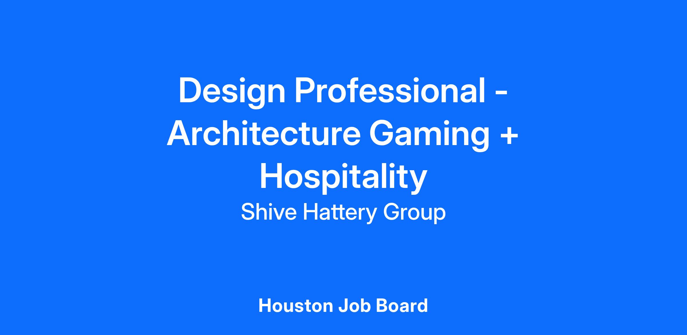 Montgomery Roth a division of Shive-Hattery in our Houston, TX office, has an immediate full-time opening for a Design Professional in Architecture Gaming + Hospitality with a minimum of 2 years of experience.