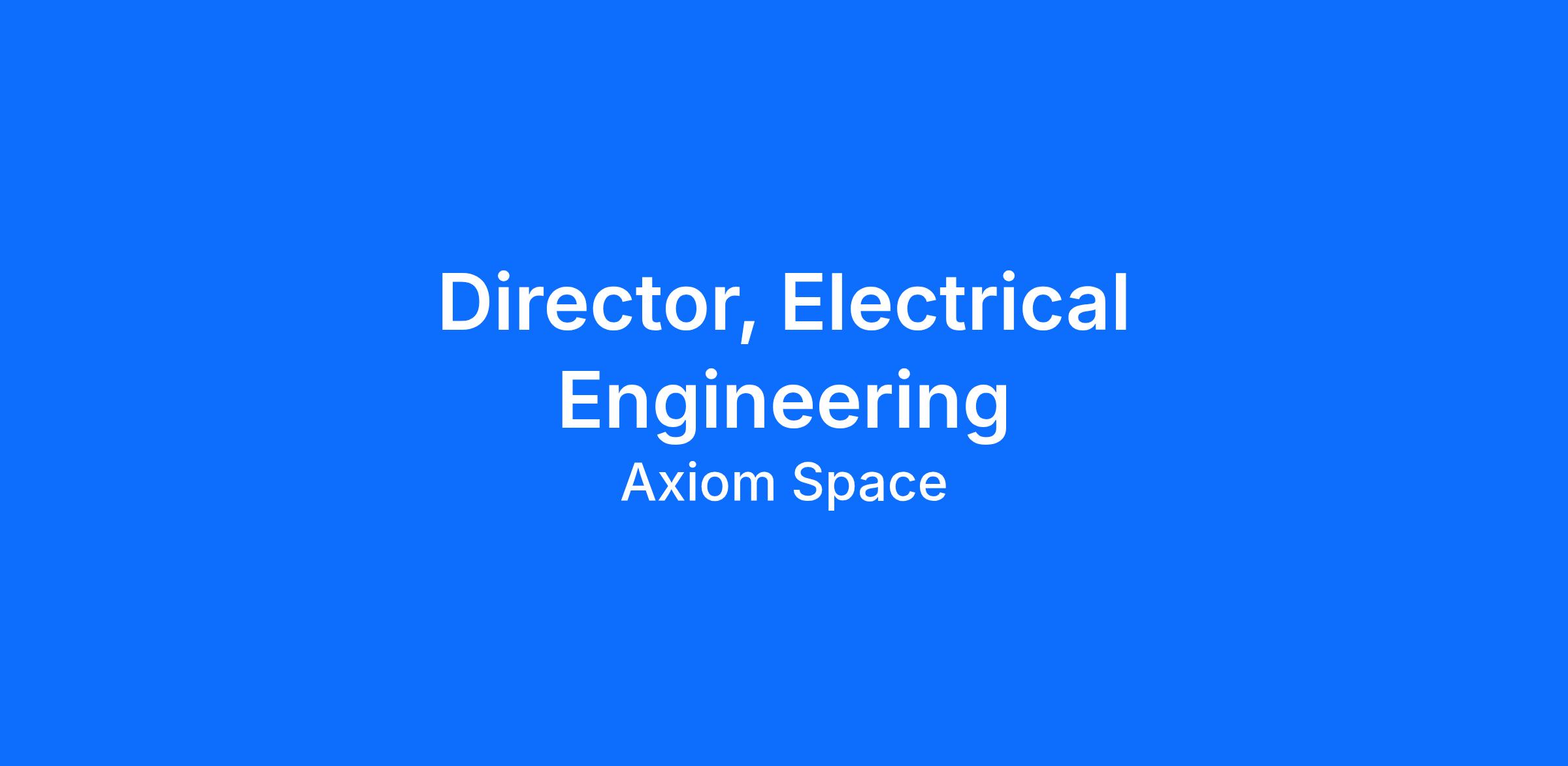 Since Axiom Space is a very complex work environment, we are looking for a resilient, high-energy Director Electrical Engineering to lead and mature a centralized Center of Excellence that supports Axiom’s complex human‑spaceflight programs.