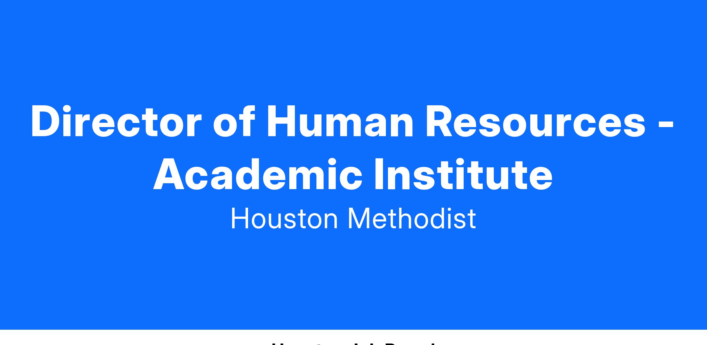 Be part of the Houston Methodist leading medicine team! Houston Methodist Academic Institute has an opening for the Director of Human Resources to support this nationally recognized research and academic organization. Houston Methodist Academic Institute is re-engineering the future of medicine with translational research and education initiatives that have a demonstrable impact on patient care. Integrated into U.S. News & World Report’s ranking as the No. 1 hospital in Texas and one of America’s “Best Hospitals,” the Academic Institute has built core facilities that provide investigators and external researchers access to exceptional scientific technology, committed to translating laboratory discoveries into novel treatments and cures for our patients, which requires a specialized research and development infrastructure and facilities, coupled with regulatory knowledge and technical expertise—science in service of medicine. With over 2,340 credentialed researchers, 1,690 clinical studies and trials, 815 faculty members, and 369 ACGME residents and fellows across 52 accredited programs, Houston Methodist will fulfill our commitments to the Centers of Excellence in cancer, gastrointestinal disorders, cardiovascular care, orthopedics and sports medicine, neurosciences, and transplantation. The Institute works collaboratively with all Houston Methodist entities in clinical research and teaching and has grown exponentially since its founding. Continued growth in its programs through a continually updated strategic plan is expected to greatly enhance its key role in the Leading Medicine mission and Houston Methodist’s national impact.