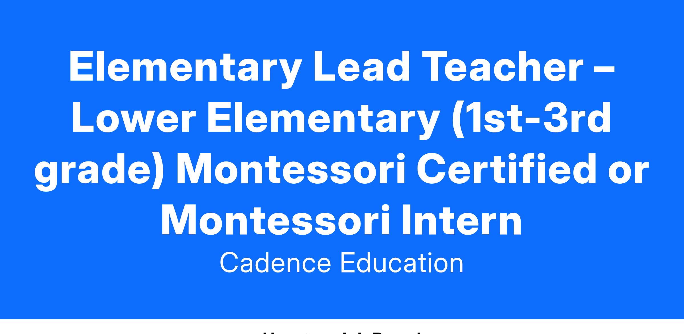 Montessori Elementary Lead Teacher/Intern Qualifications: