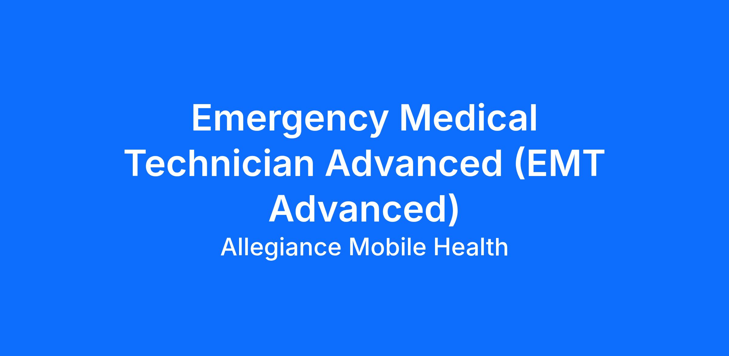 Allegiance Mobile Health of West Houston, TX is looking to hire Advanced Emergency Medical Technicians (EMT ADV).