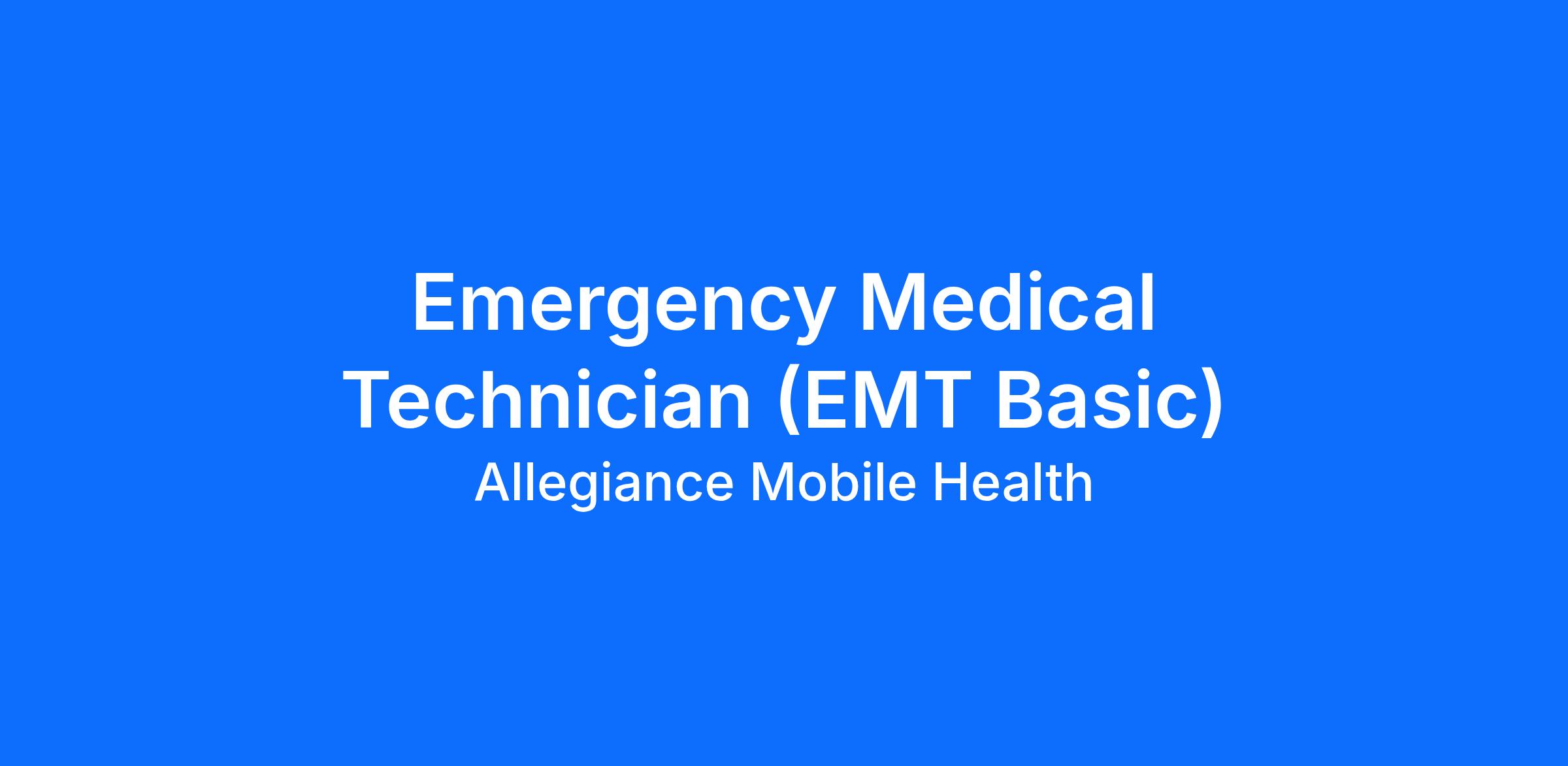 Allegiance Mobile Health of West Houston, TX is looking to hire Emergency Medical Technicians (EMT-B).
