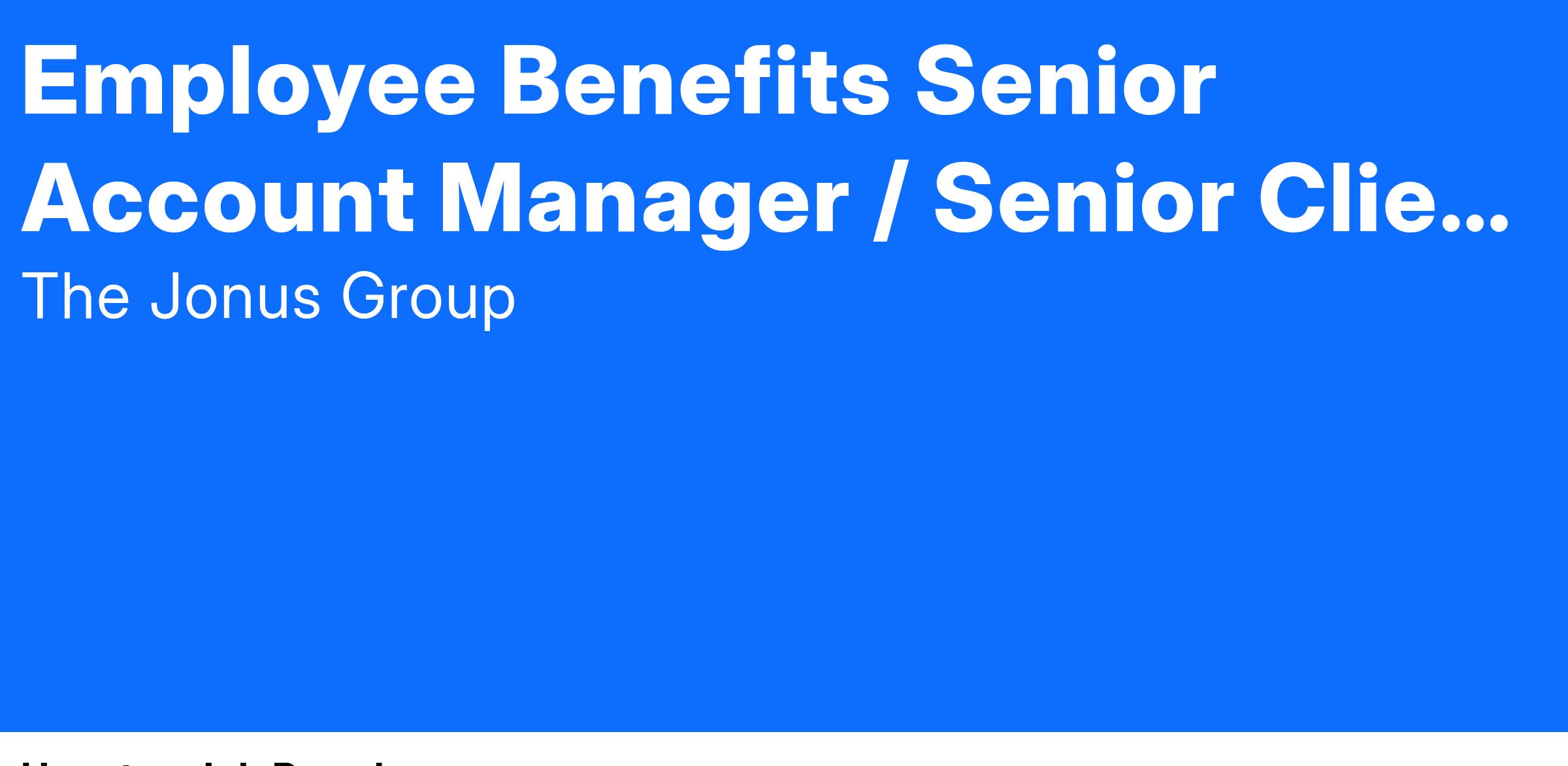 We are seeking a talented and experiencedΒ Employee Benefits Senior Account Manager / Senior Client Relationship ExecutiveΒ to join our team. In this position, you will be responsible for managing a portfolio of clients, providing exceptional customer service, and cultivating strong relationships to ensure client satisfaction. You will also collaborate with internal teams to develop and implement strategic benefits solutions that meet clients' needs.