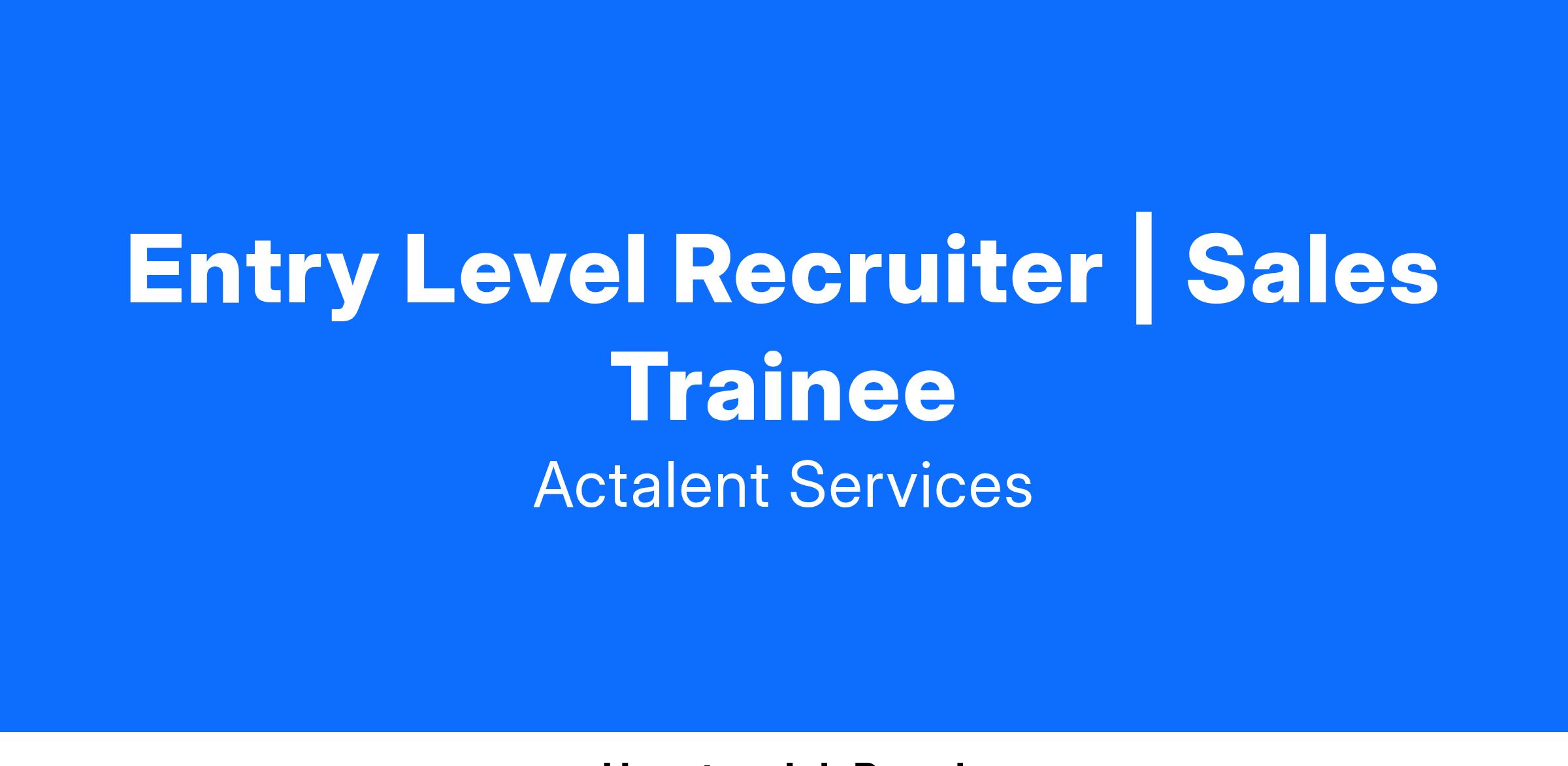 We’re looking for a highly motivated Entry-Level Recruiter | Sales Trainee to join our team and help us advance the careers of skilled professionals doing impactful work. Building trusted relationships with our network of engineering and sciences consultants under our Actalent brand, or corporate professionals under our Aston Carter brand, is a key part of our company strategy. If you’re enthusiastic about partnering with bright and sharp individuals, understanding what makes them tick, and helping them achieve their career goals—keep reading, we might be a great match!