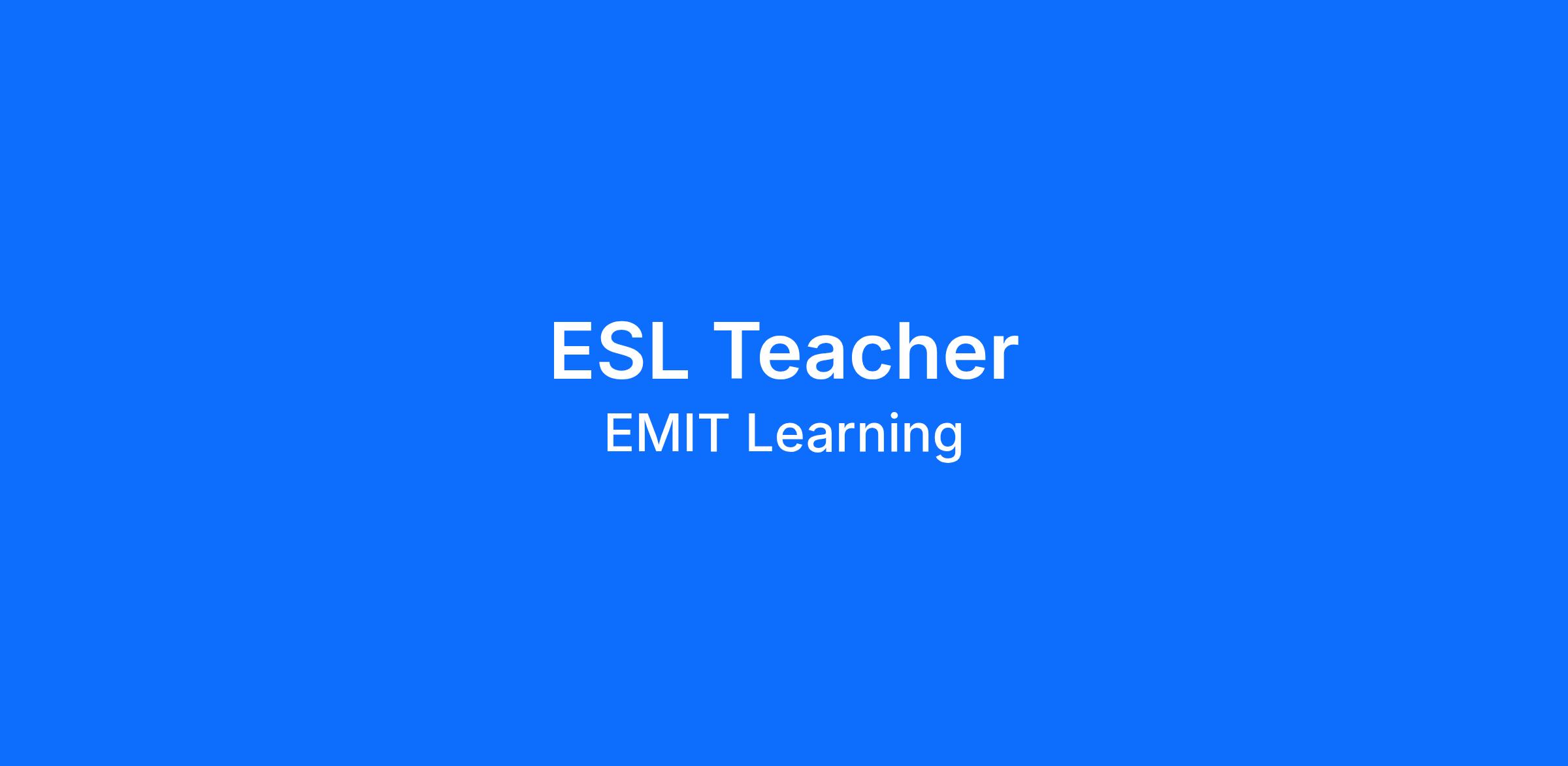 EMIT Learning is currently seeking a passionate and dedicated ESL (English as a Second Language) Teacher to join our team. As an ESL teacher, you will play an essential role in helping students from diverse linguistic and cultural backgrounds develop English language proficiency and achieve academic success. If you are committed to empowering multilingual learners and fostering an inclusive, engaging classroom environment, we encourage you to apply.