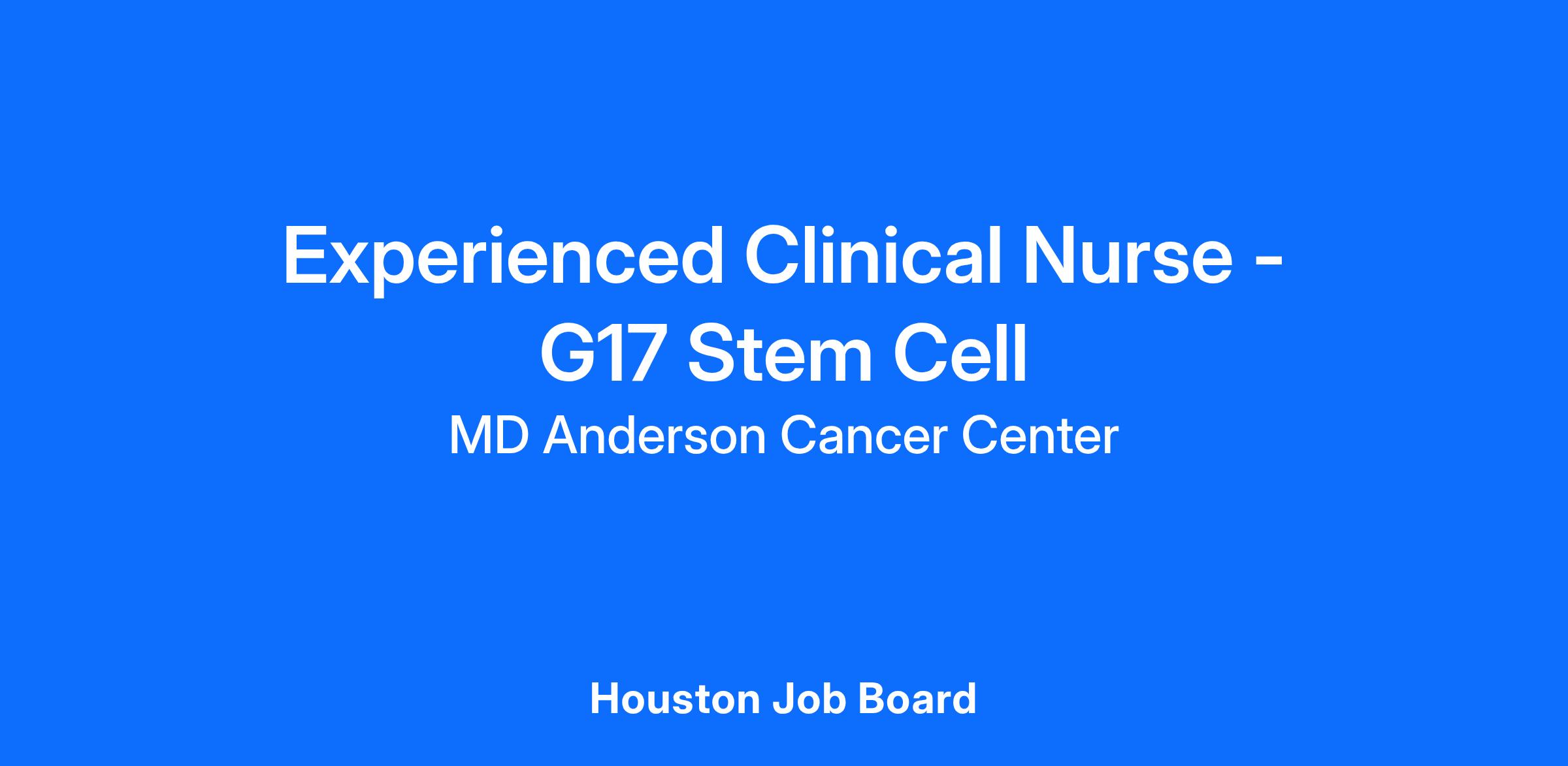 The Clinical Nurse on G17 Stem Cell Transplantation & Cellular Therapy unit at MD Anderson Cancer Center manages patient outcomes by providing, coordinating and supporting clinical aspects of direct patient care across the continuum of care. They impact quality of patient care, patient outcomes and use of resources in a designated area in collaboration with a multidisciplinary team.
