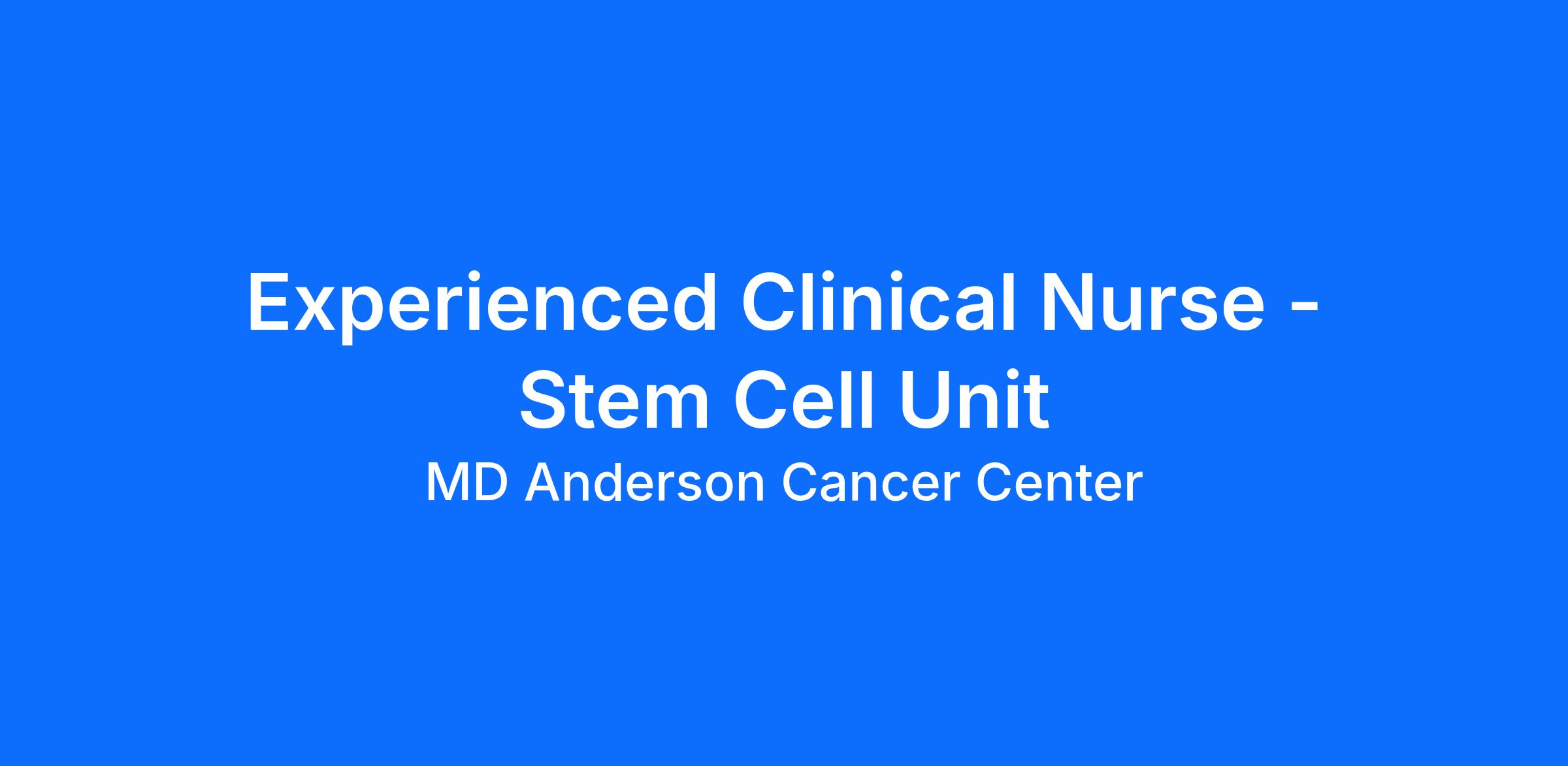 The Clinical Nurse on G17 Stem Cell Transplantation & Cellular Therapy Unit at MD Anderson Cancer Center manages patient outcomes by providing, coordinating and supporting clinical aspects of direct patient care across the continuum of care. They impact quality of patient care, patient outcomes and use of resources in a designated area in collaboration with a multidisciplinary team.