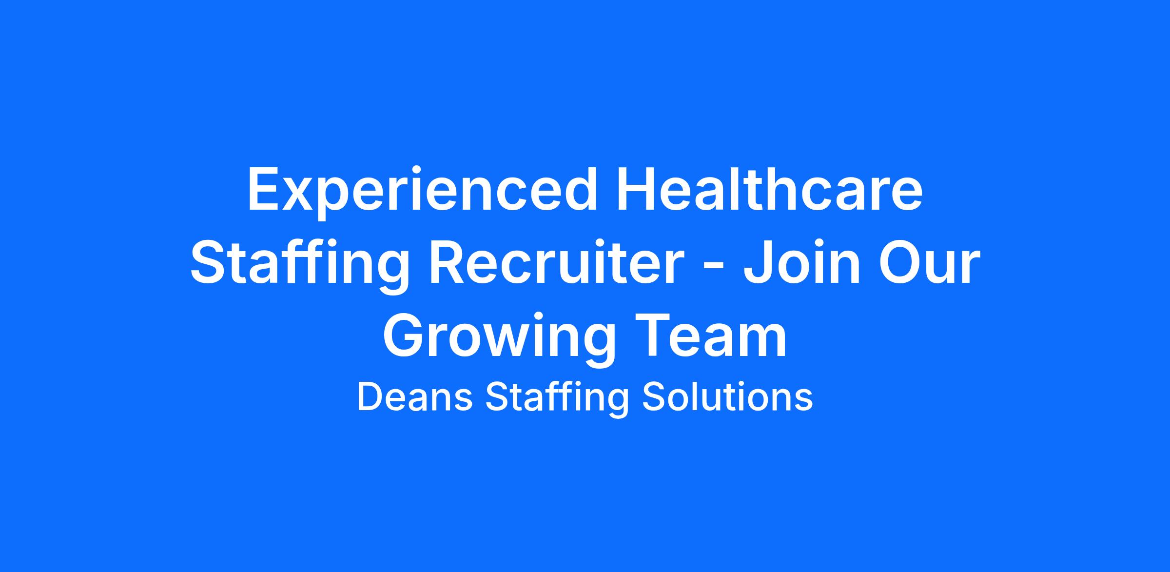 DescriptionExperienced Healthcare Staffing Recruiter – Join Our Growing Team
