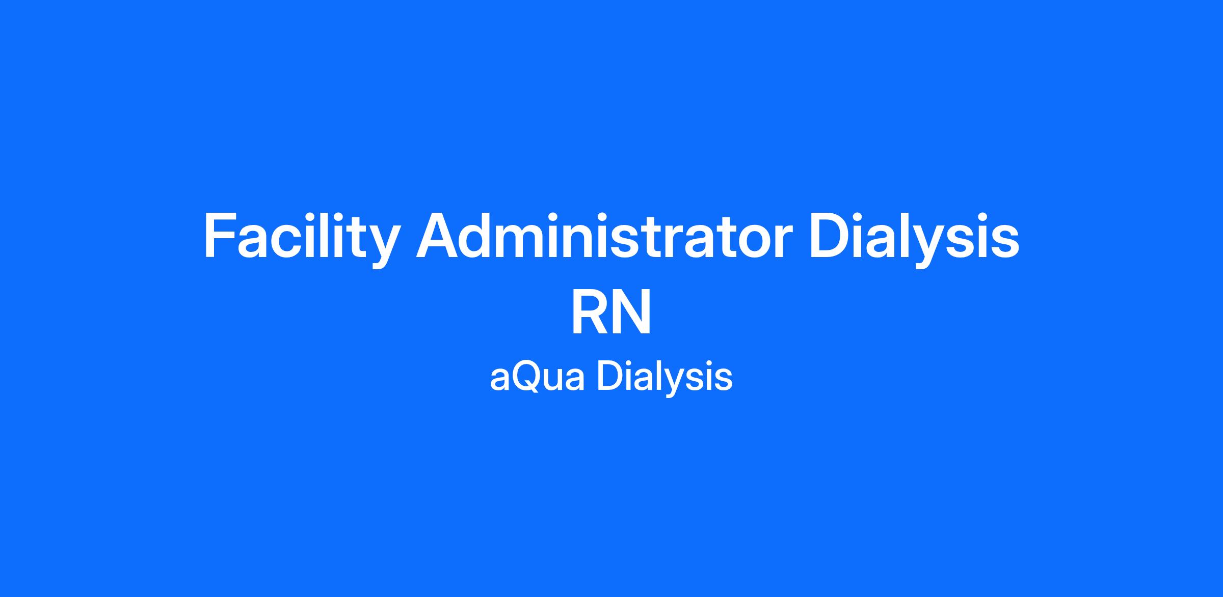Clear Lake Dialysis is currently looking for a Facility Administrator. The Administrator is responsible for the successful day to day operation of the center.
