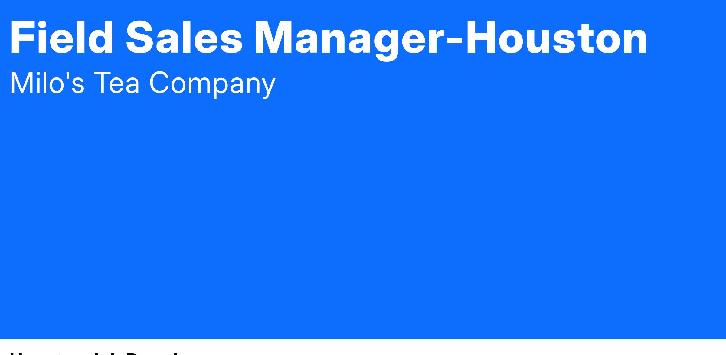 The Field Sales Manager builds the Milo’s brand throughout the assigned territory through daily engagement with retailers, Key Decision Makers, and consumers. Improving the retail placement and treatment of our products within current retailers, as well as expanding the brand to new ones. They develop business plans specific to their territories and build internal and external alignment. They implement their strategy with cross-functional teamwork and communication. They partner with retailers to profitably grow sales within the assigned territory.
