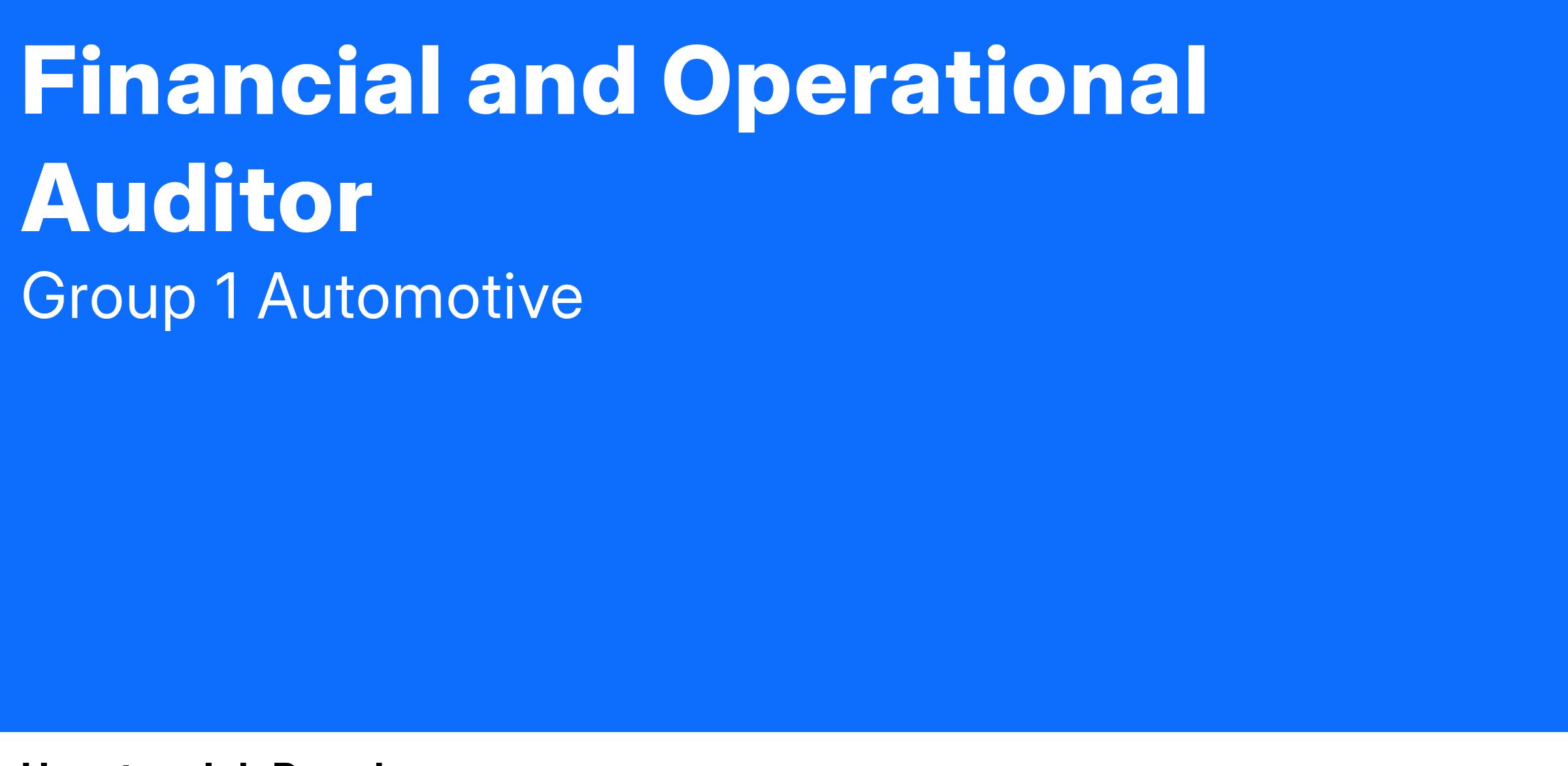 Group 1 Automotive, an international Fortune 250 automotive retailer and a leading operator in the automotive retailing industry, is looking to add a qualified Financial and Operational Auditor at our corporate office in West Houston.