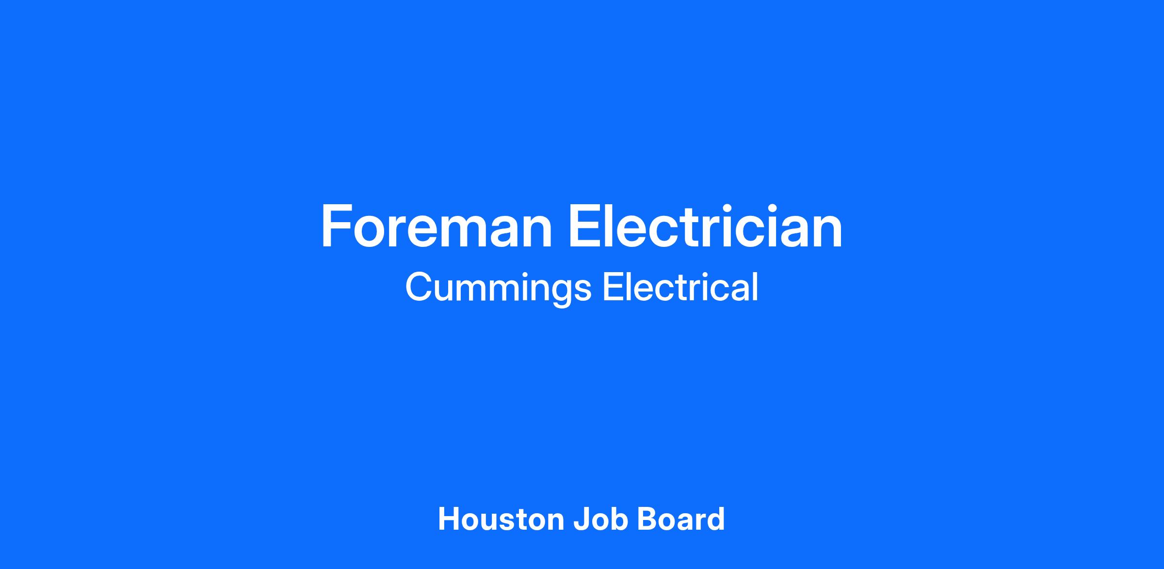 Cummings Electrical is hiring: Foreman Electricians.