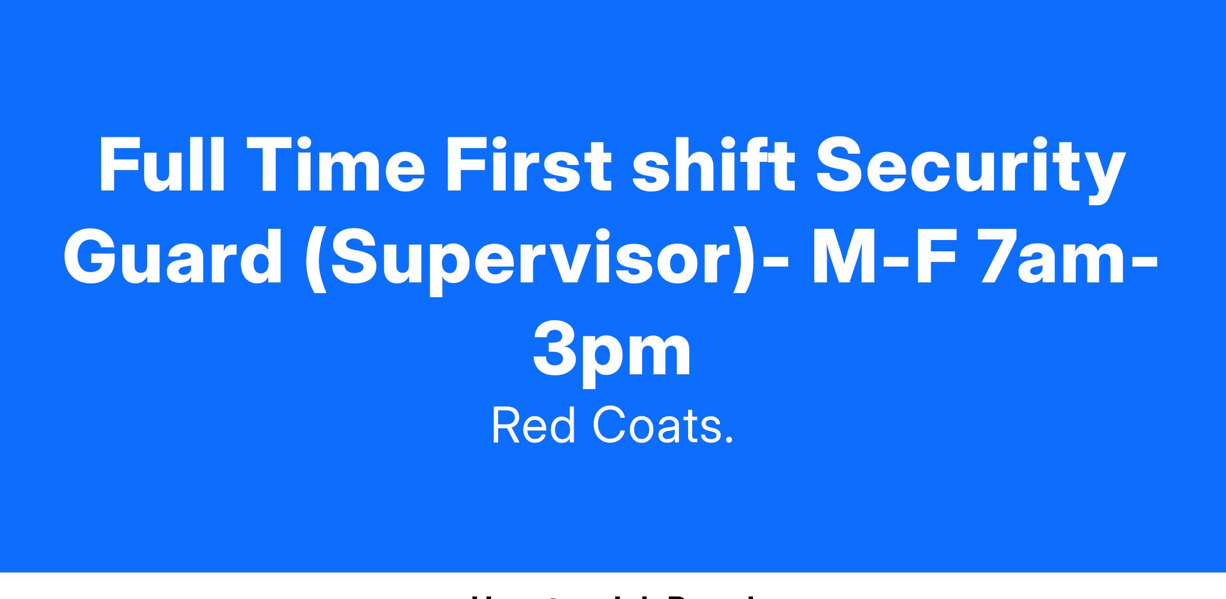 Full Time First shift Security Guard (Supervisor)- M-F 7am-3pm