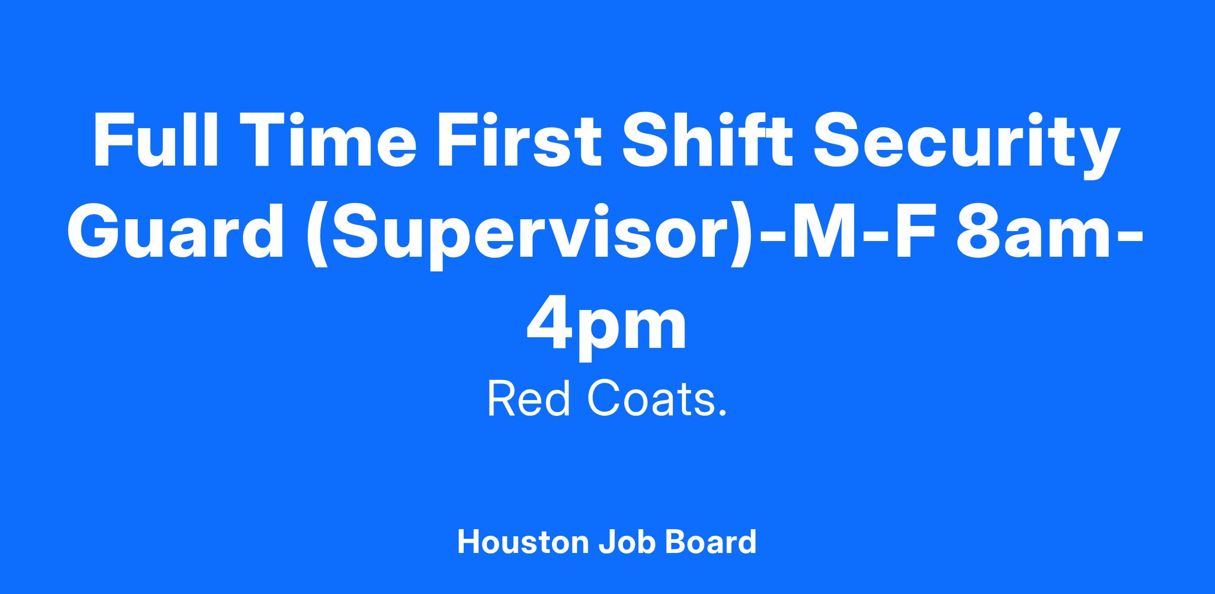 Full Time First Shift Security Guard (Supervisor)-M-F 8am-4pm