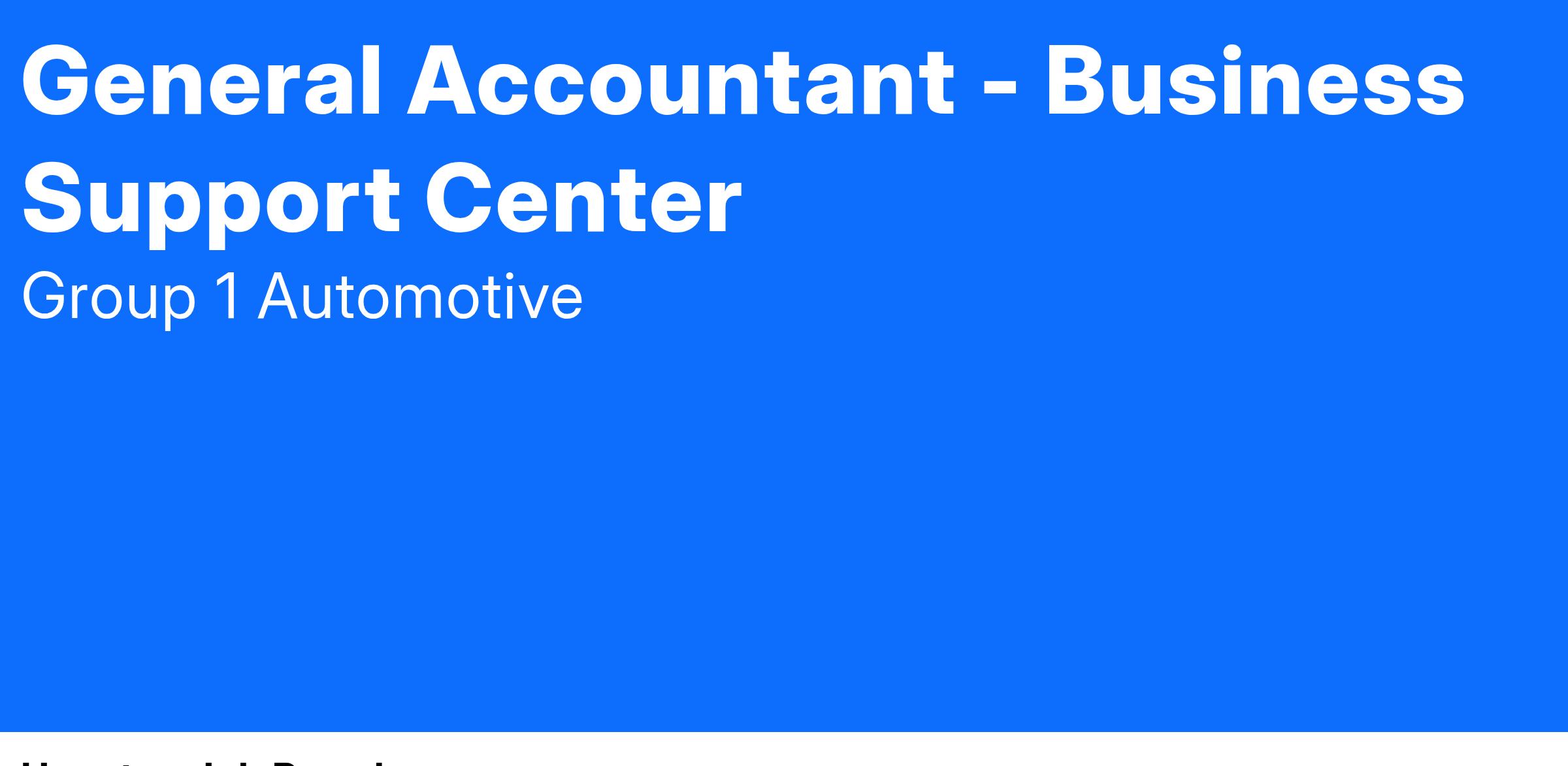 The Business Support Center is part of the fast growing Group 1 Automotive, a leader in automotive retail. We are looking to add a qualified General Accountant to our team. We offer our associates a team environment, great benefits and ongoing training and support. If you are in alignment with our values of Integrity, Transparency, Professionalism, Teamwork, and Respect - now might be the time for you to accelerate your career as part of the best company in automotive retail. Apply today or refer a qualified friend.