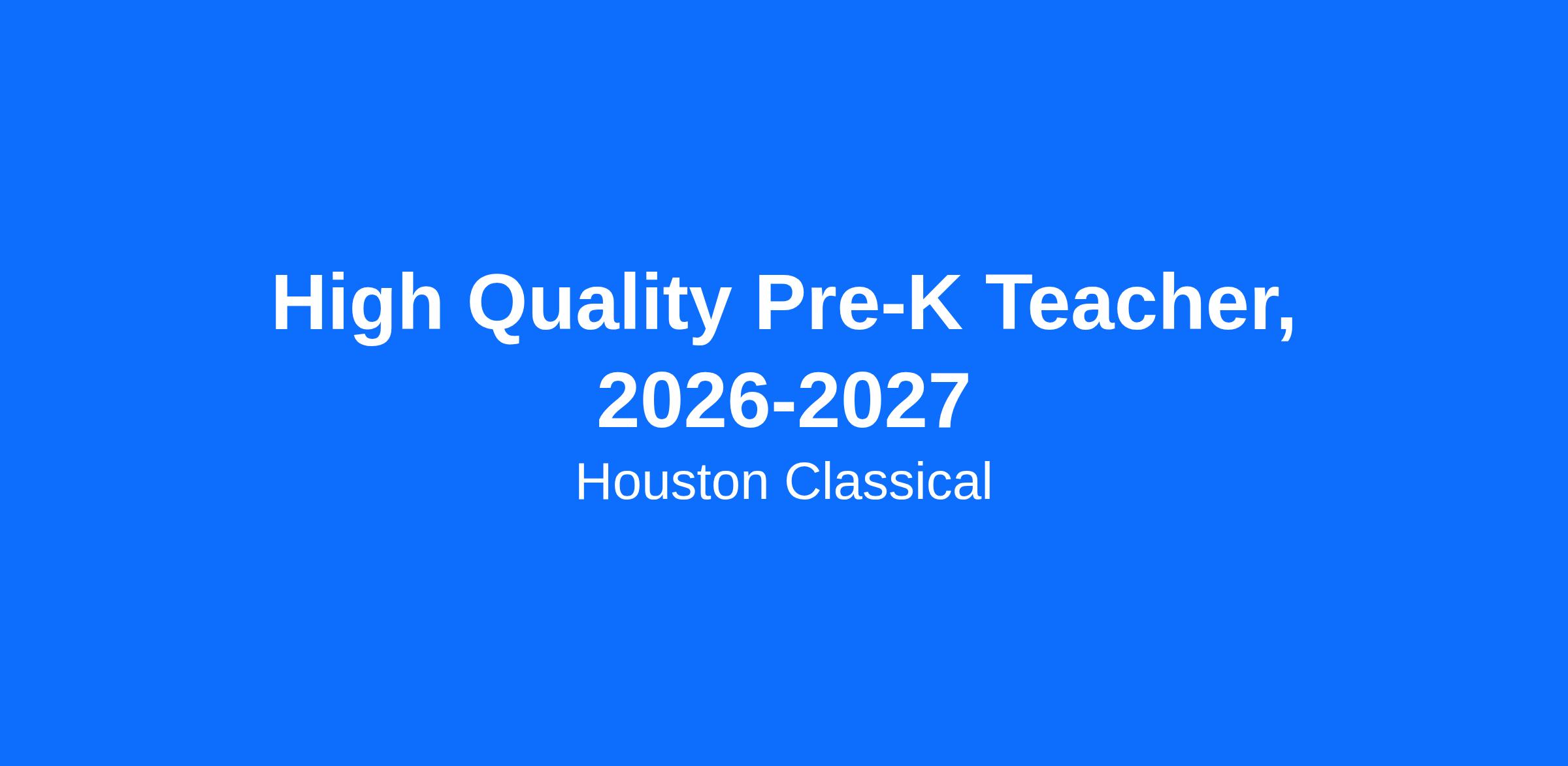 This position is governed by Texas High-Quality Prekindergarten (HQPK) requirements. In accordance with state guidelines, candidates must meet all required HQPK qualifications, including applicable credentials and training, to be eligible for consideration. Due to these requirements, Houston Classical is only able to consider applications from candidates who possess the appropriate qualifications at the time of hire.