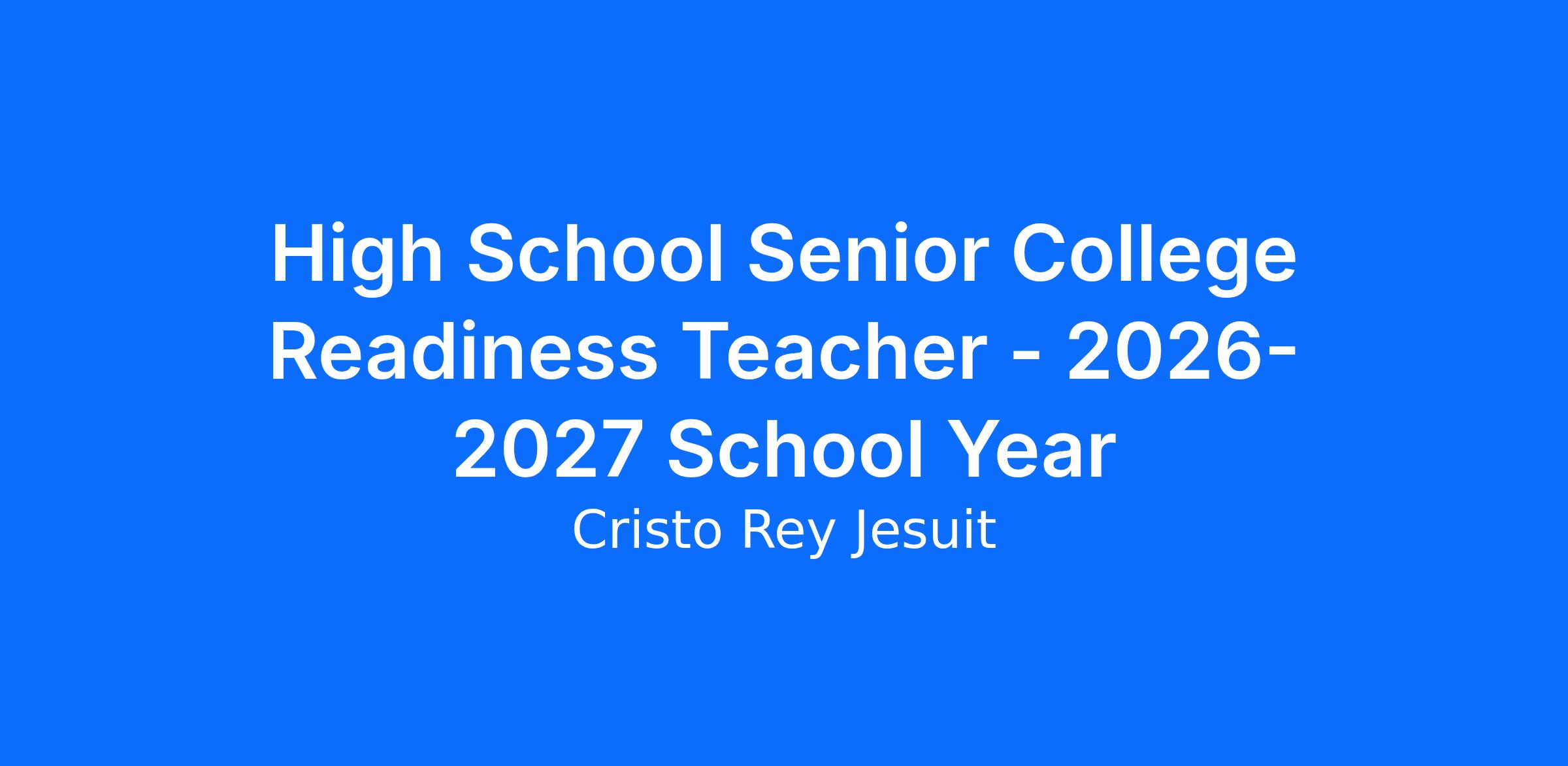 Job Summary: Members of the Cristo Rey Jesuit Faculty are committed to the mission of promoting educational equity by preparing students to succeed in college and beyond. Our teachers build an environment that is not only academically rigorous, but is also one that centers Catholic values to empower students to lead futures grounded in faith, purpose, and service. Faculty work intentionally to embody and instill in our students Cristo Rey Jesuit's values of being open to growth, intellectually competent, loving, religious, committed to justice, and work-experienced.