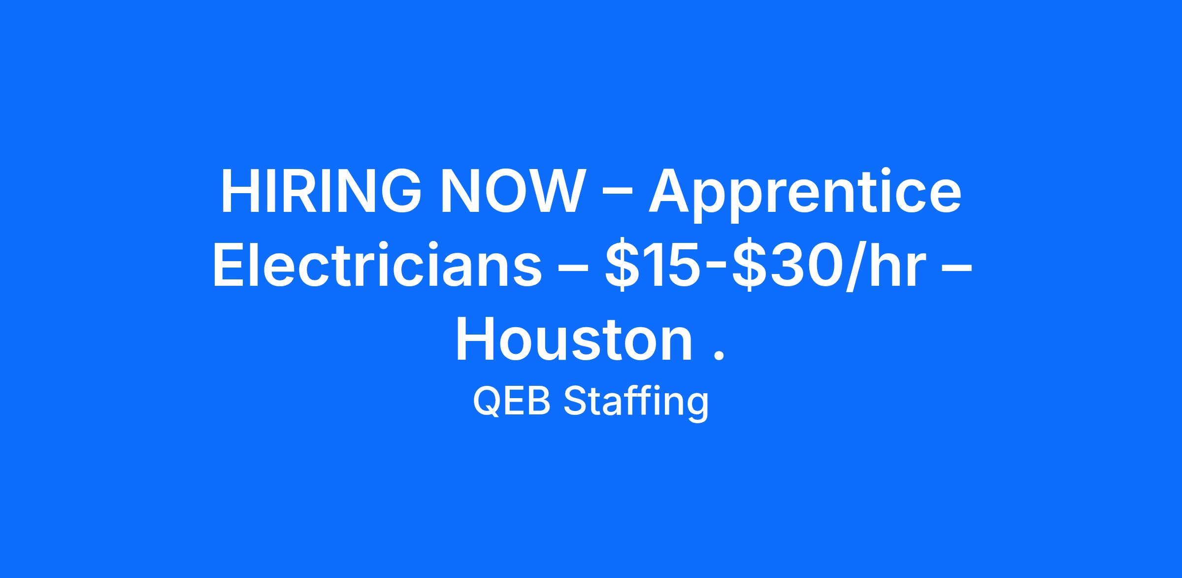 We are hiring IMMEDIATELY for Apprentice Electricians with commercial experience in the Houston area.