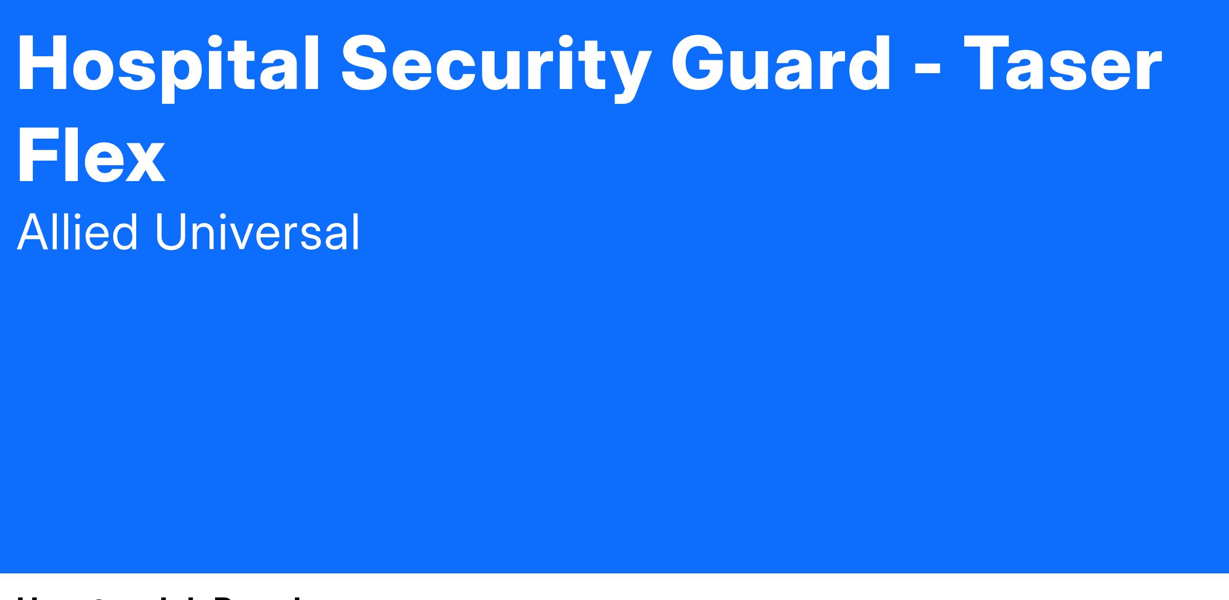 Allied Universal Services is currently searching for a Professional Hospital Security Officer. The Security Officer will be working in a hospital/health care environment for Allied Universal Services. Our officers allow us to accomplish our company’s core purpose which is “to serve, secure and care for the people and businesses in our communities”. The Professional Security Officer is responsible for the safety and security of the facilities they protect. Our security officers act as a visible deterrent to crime and client rule infractions; they detect and report suspicious, unsafe or criminal acts at or near their assigned posts which may be a threat to the property, clients, guests or employees at the site. Although essential activities may differ based on the facility at which they work, below are some of the standards: