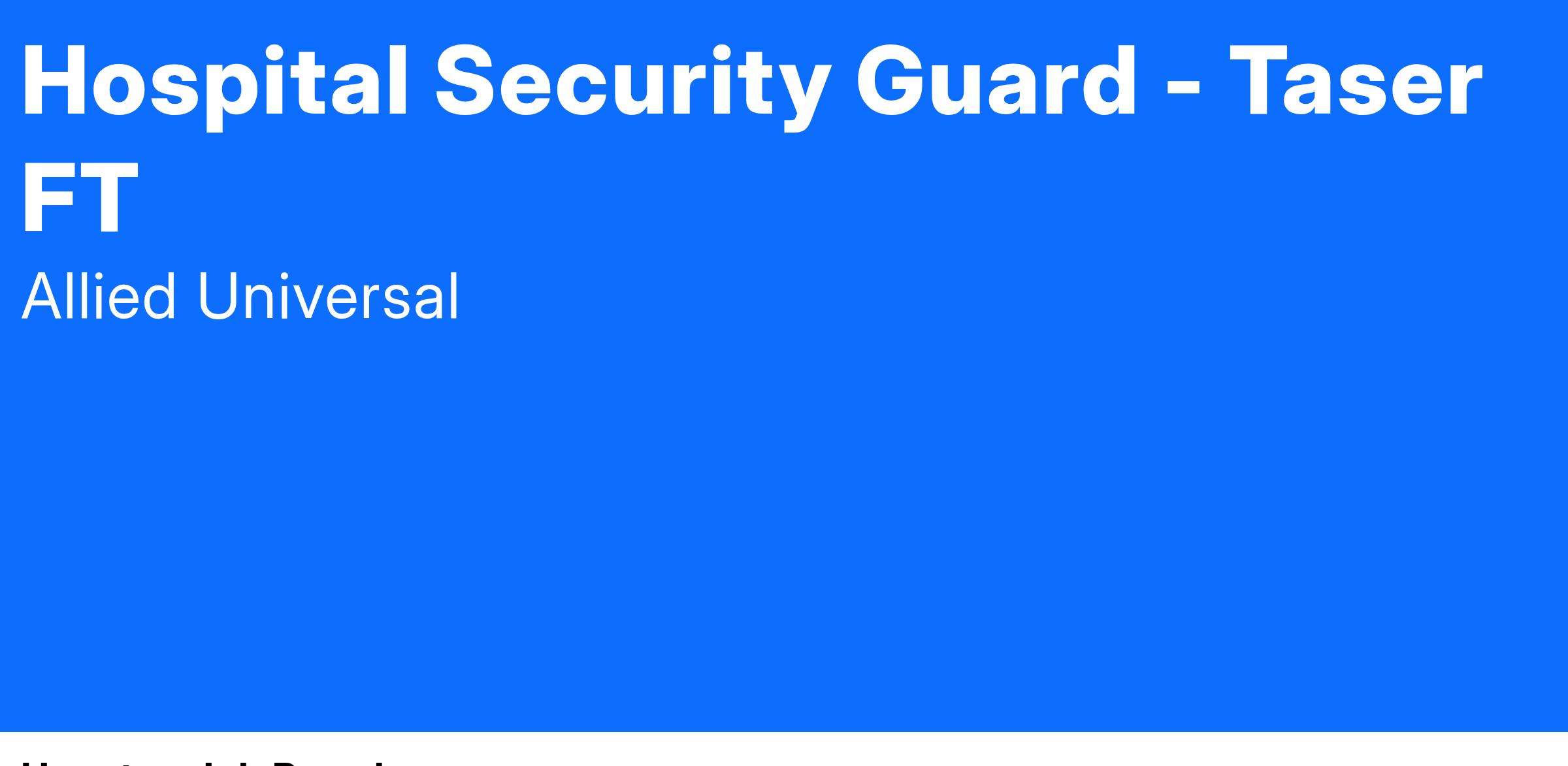 Allied Universal Services is currently searching for a Professional Hospital Security Officer. The Security Officer will be working in a hospital/health care environment for Allied Universal Services. Our officers allow us to accomplish our company’s core purpose which is “to serve, secure and care for the people and businesses in our communities”. The Professional Security Officer is responsible for the safety and security of the facilities they protect. Our security officers act as a visible deterrent to crime and client rule infractions; they detect and report suspicious, unsafe or criminal acts at or near their assigned posts which may be a threat to the property, clients, guests or employees at the site. Although essential activities may differ based on the facility at which they work, below are some of the standards:
