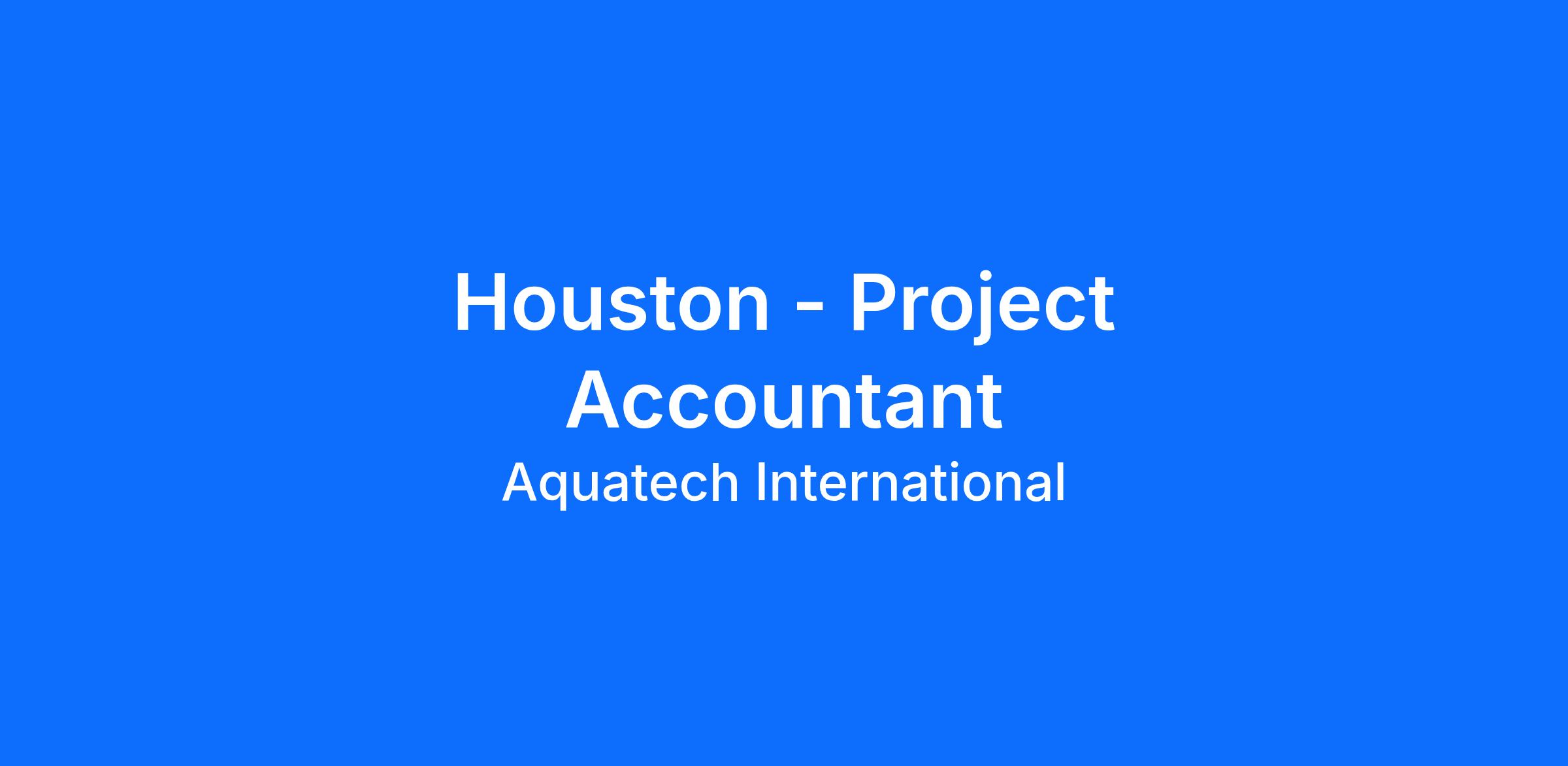 Aquatech has an immediate need for a full-time Project Accountant to work in our Houston, TX office. The Project Accountant will report directly to the Corporate Controller and will perform the duties described in the job description below.