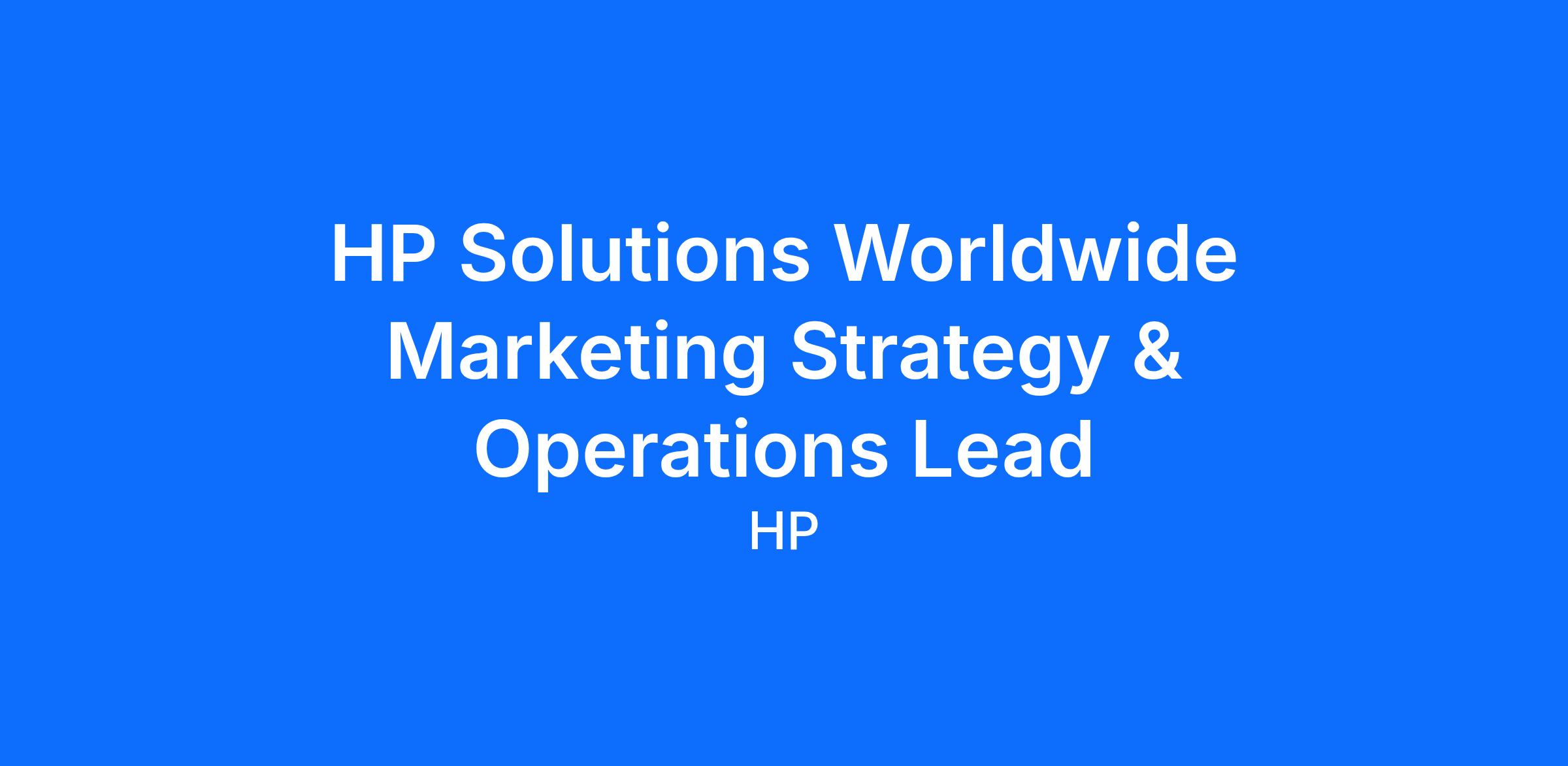 The Strategy & Operations Lead is a critical role within the Global HP Solutions Marketing organization, responsible for driving division wide operational excellence, enabling strategic alignment, and ensuring flawless execution across worldwide marketing initiatives.