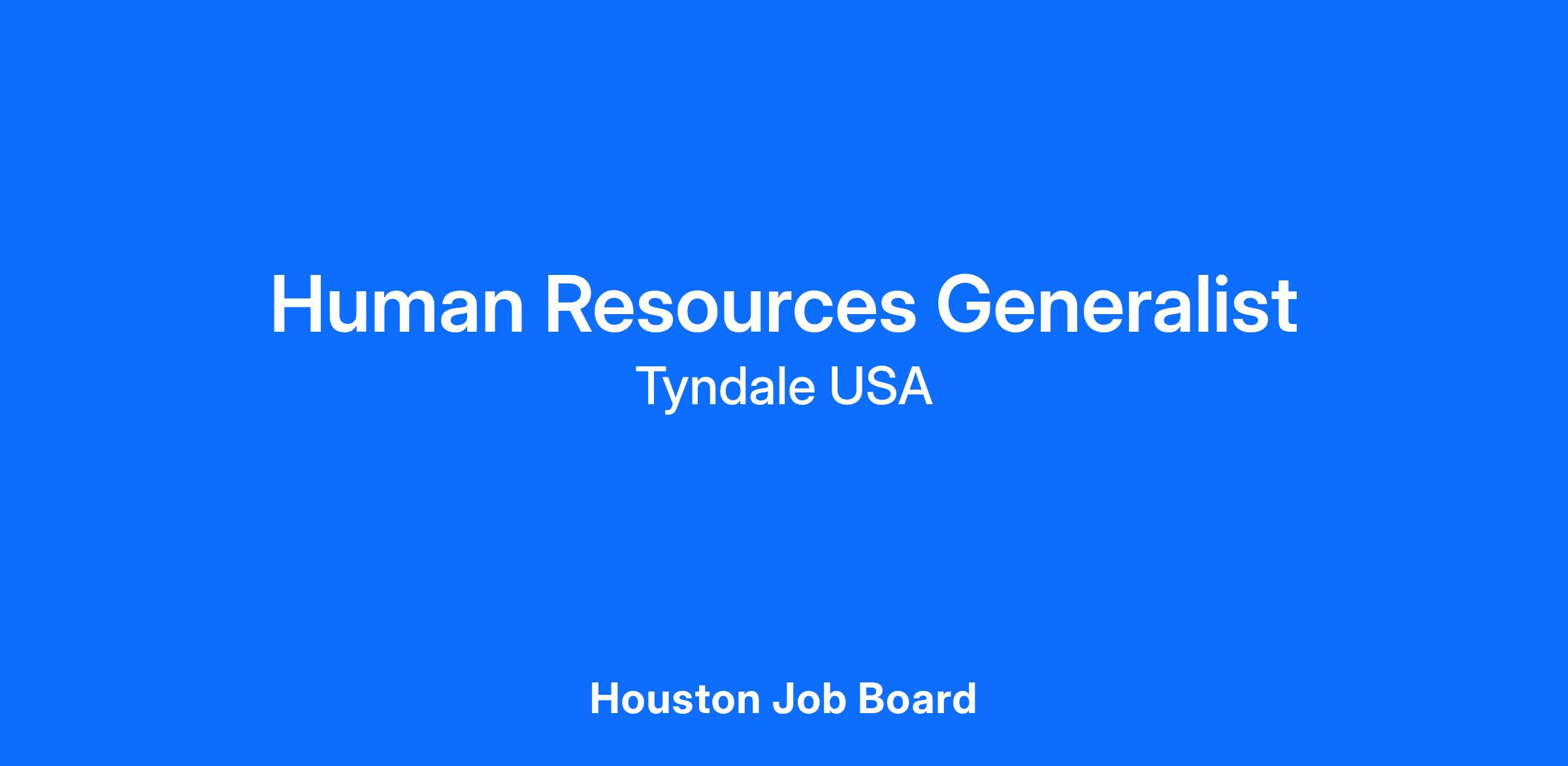 The Tyndale Company is seeking a Human Resources Generalist to join our award-winning HR team in Houston, TX! The HR Generalist work collaboratively as a member of the HR team to support the company’s overall strategic vision through providing HR excellence. The Generalist will have responsibility in multiple functional areas of HR including but not limited to, benefits, recruiting, employee relations, performance management, safety and compliance, and reporting.