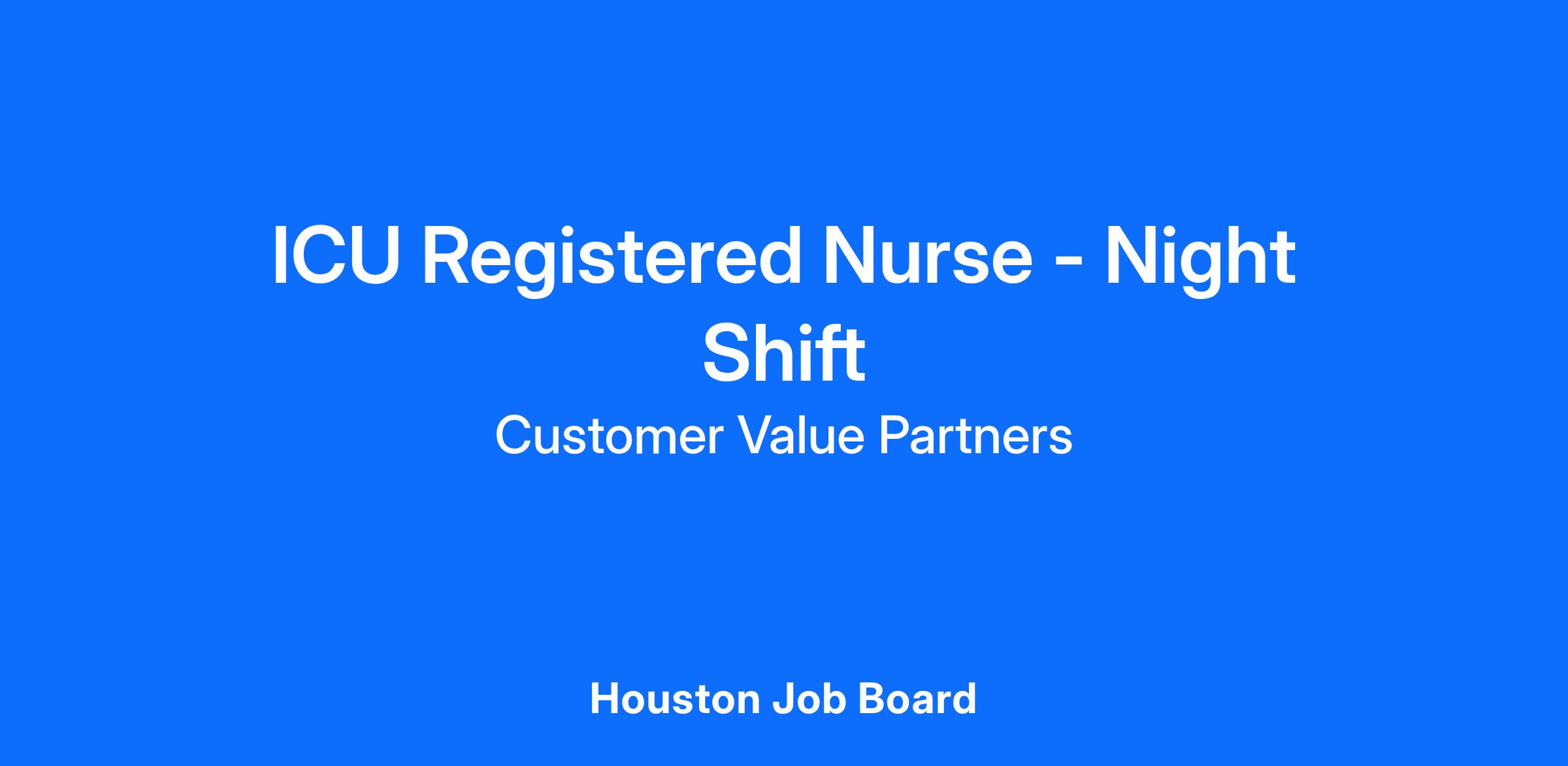 CVP seeks a Registered Nurse to join our team in providing overnight nursing services for our Nation's Veterans at the Michael E. DeBakey VA Medical Center (MEDVAMC) in Houston, TX. This is an exciting opportunity to serve those who have served us while working in a variety of specialty units including Surgical Intensive Care Unit, Medical Intensive Care Unit, Cardiac Care Unit, Emergency Room, Medical/Surgical Units, Stepdown Unit, Spinal Cord Injury Unit, and Extended Care Unit. Night shift hours are 1930 to 0800.