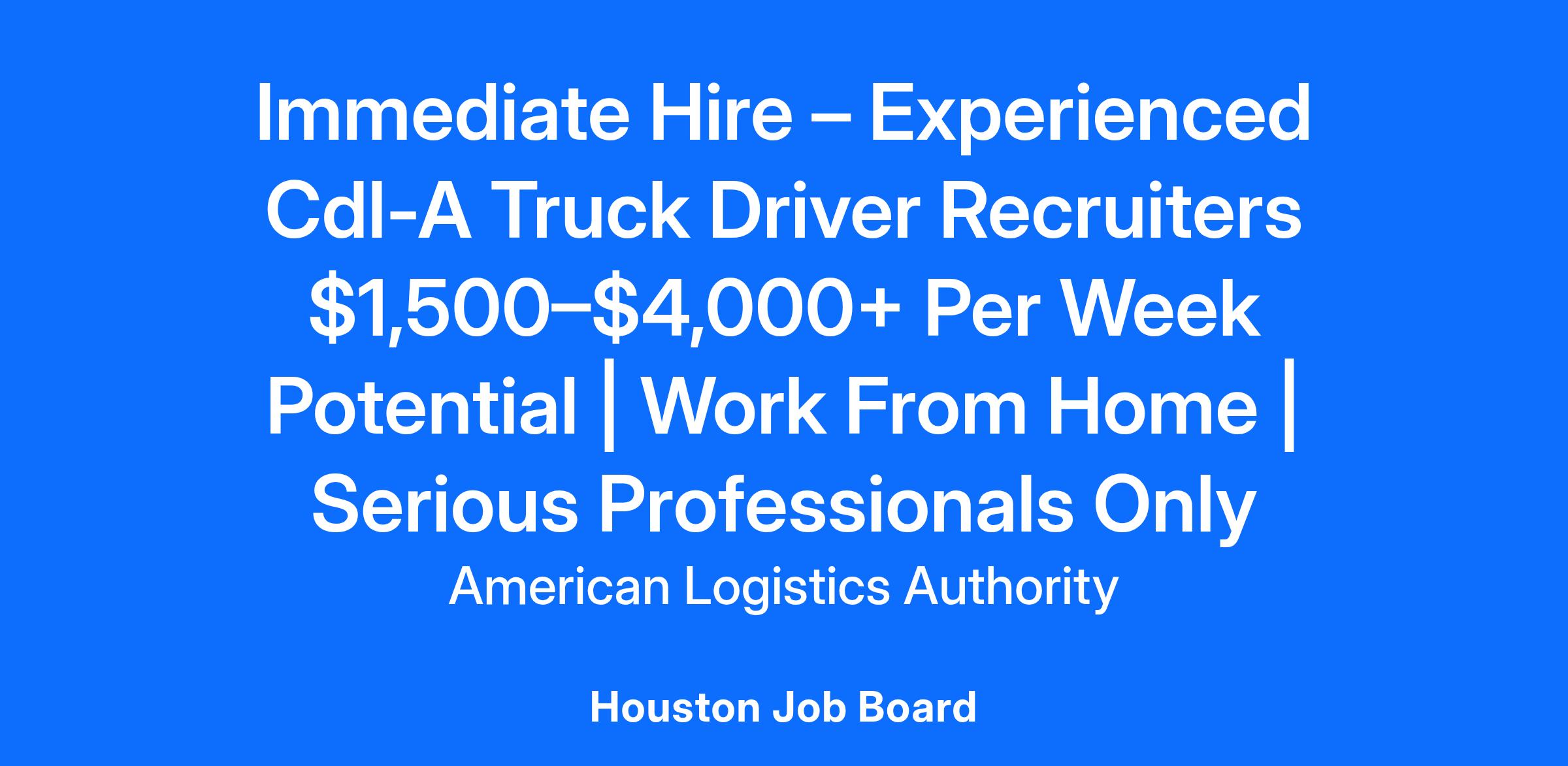 Truck Driver Nation is urgently hiring experienced CDL-A Truck Driver Recruiters who know this business and know how to produce results. This is a performance-driven opportunity with real weekly earning power for recruiters who actually work the pipeline from start to finish.