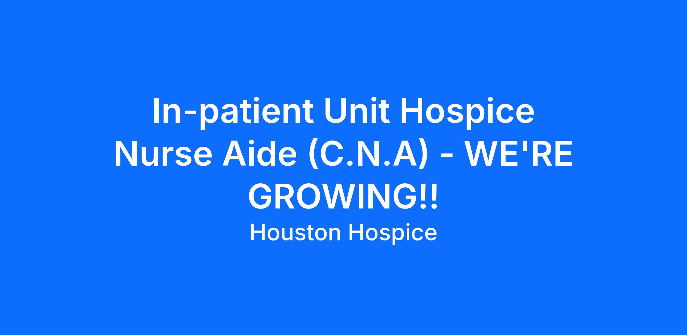 We are seeking a candidate who would be responsible for all aspects of personal care of patients/families on the inpatient unit as a participating member of the hospice team. Tasks are assigned by and performed under the supervision of a Registered Nurse.
