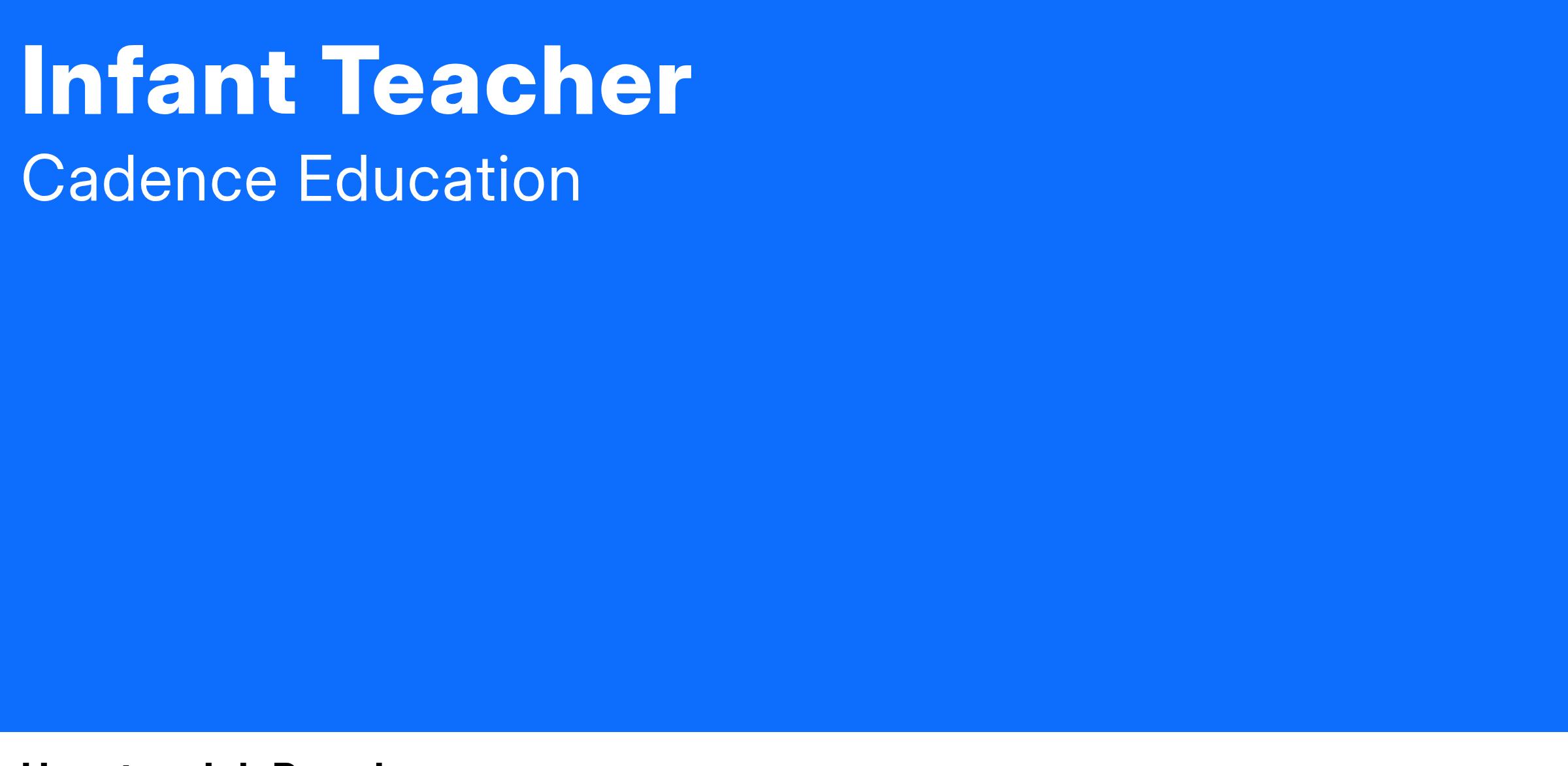 As an Infant Teacher, you will embrace the Cadence Education philosophy and collaborate with a dynamic team to create a nurturing learning environment for all children. You will document and share important milestones with parents, work with fellow teachers to implement engaging curriculum, and foster children's interests and safety. Enhance play experiences, model social behavior, and contribute to planning diverse daily activities.
