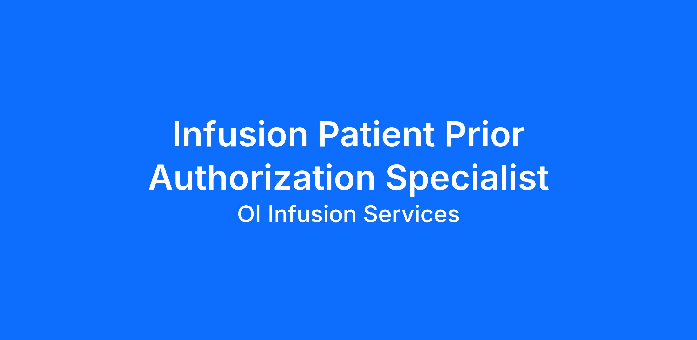 The Patient Intake Coordinator will work with patients and insurance providers to perform pre-certification and insurance verifications for infusion services.