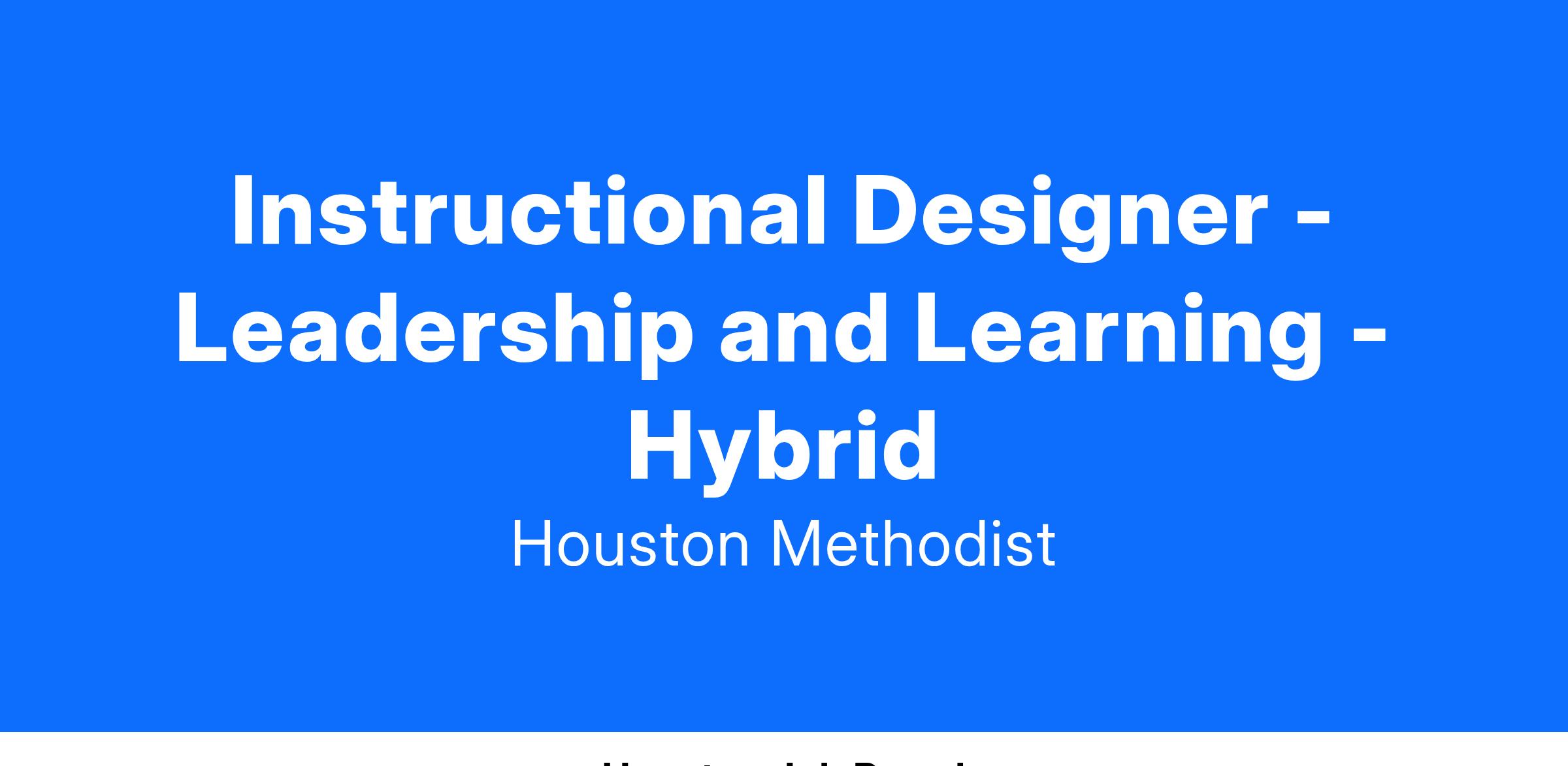 At Houston Methodist, the Human Resources (HR) Instructional Designer position is responsible for the design and development of high quality training curriculum and materials to support learning and development initiatives and programs of Houston Methodist. This position works with subject matter experts and leaders to conduct needs assessments, establish training objectives, and design programs in a variety of formats (e.g., e-Learning, instructor led, hybrid) using best practices to meet those objectives. Additional responsibilities include testing and troubleshooting eLearning modules, implementation and tracking of training programs, and delivering training programs for employees at all levels. This position will demonstrate and incorporate broad knowledge of current and emerging industry trends and be responsible for ongoing evaluation and maintenance of training programs.