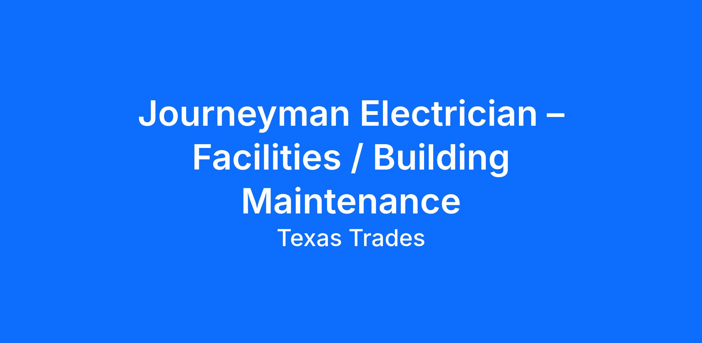 HOUSTON TEXAS-Journeyman Electrician - Facilities / Building Maintenance