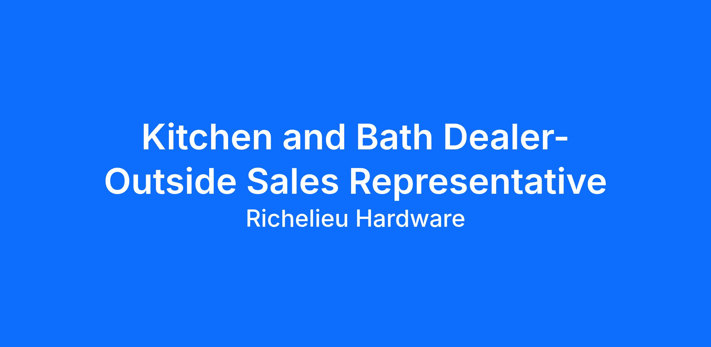As a critical and meaningful role within the Richelieu organization, the Kitchen & Bath Dealer Sales Representative is responsible for the overall relationship and management of day-to-day sales activities towards Kitchen & Bath dealers in his/her provided territory. You will successfully manage the sales of Richelieu’s premium solutions through structured consultative sales discussions, ultimately serving as a business advisor towards your clients. By positioning yourself as an indispensable resource, you will enable your clients to solve problems and increase business results. In turn, you will be building a thriving business of your own.
