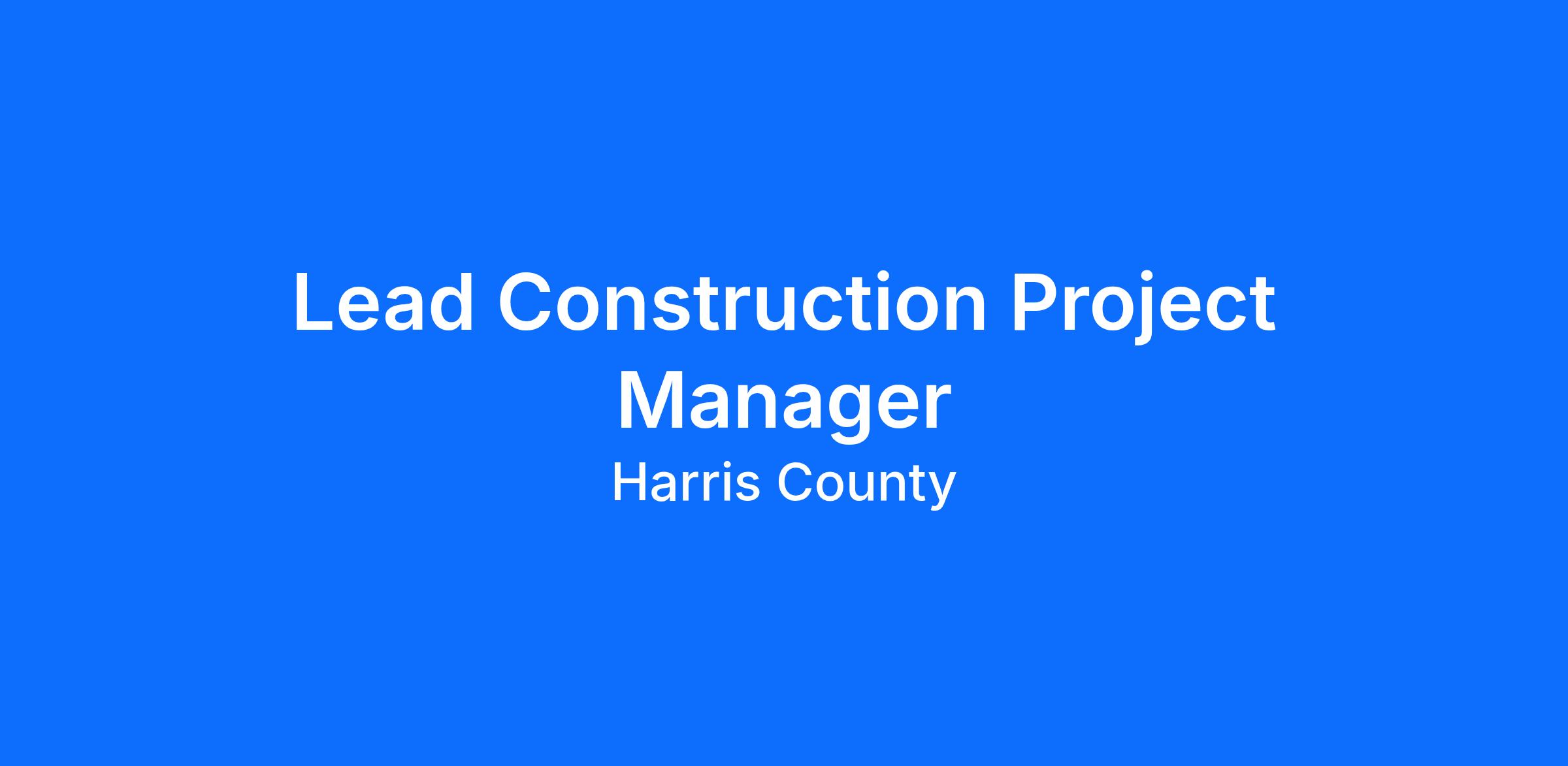 The Harris County Flood Control District is seeking qualified candidates for the role of Lead Construction Project Manager.