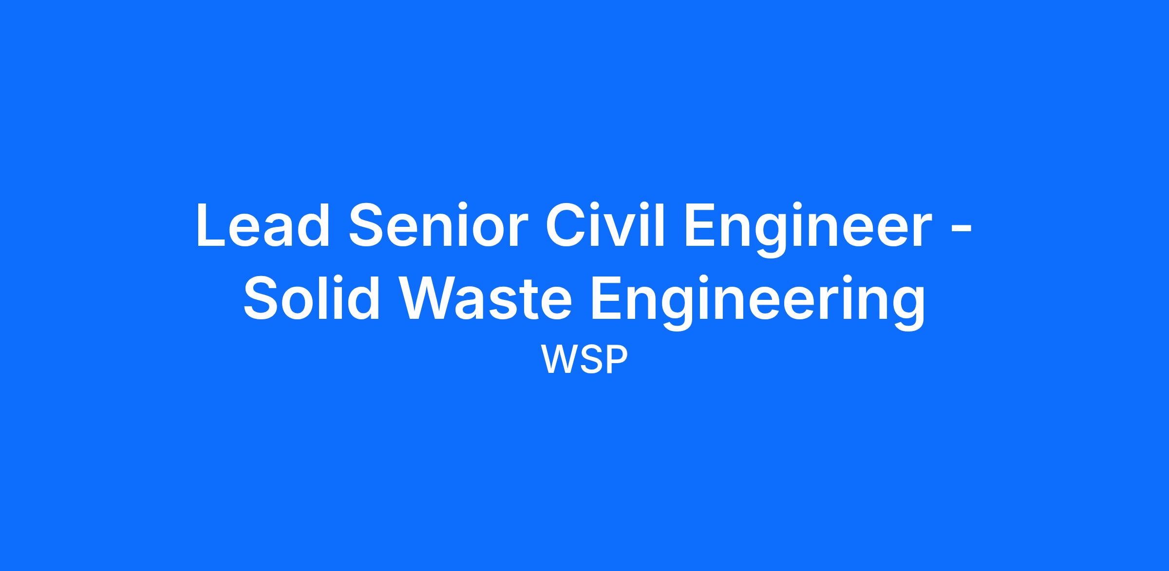 WSP is currently initiating a search for a Lead Senior Civil Engineer - Solid Waste Engineering in Texas. The following locations will be considered: Houston, Austin, San Antonio, and Dallas.