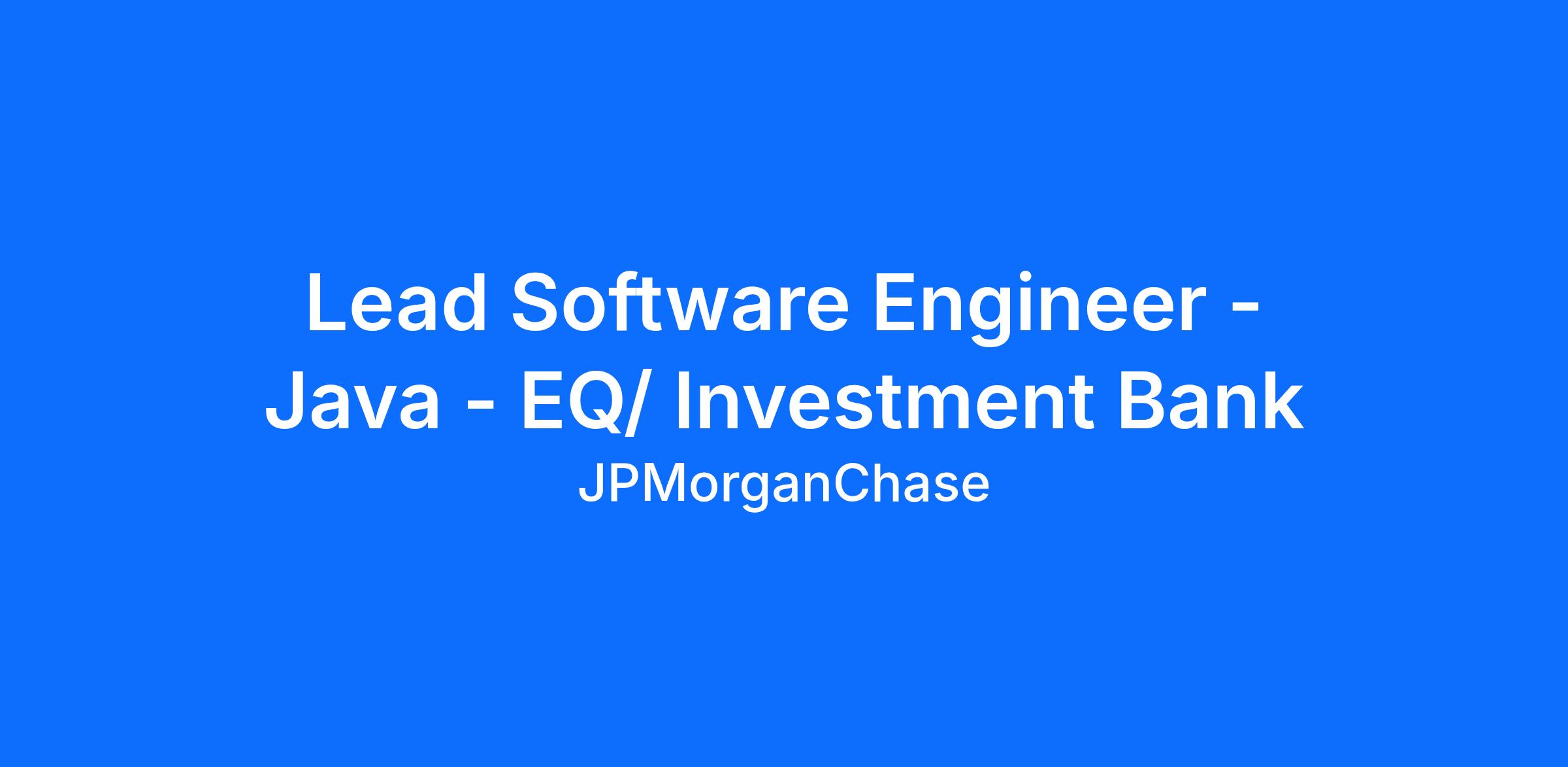 <div><strong>Description</strong><br/><p style='color: rgb(46, 46, 46); font-family: "Oracle Sans"; font-size: 12pt; margin-bottom: 12pt; margin-top: 0pt;'>Β </p><p style='color: rgb(46, 46, 46); font-family: "Oracle Sans"; font-size: 12pt; margin-bottom: 12pt; margin-top: 0pt;'><span>We have an opportunity to impact your career and provide an adventure where you can push the limits of what's possible.</span></p><p>As a Lead Software Engineer at JPMorganChase within the Commercial and Investment Bank - Global Equity Derivatives Limits and Controls Management team of Markets Technology, you will architect and build a robust multi-asset risk and control management platform supporting FICC and Equities trading activities. You will collaborate closely with product, business, and user experience teams to deliver scalable, resilient, and intuitive solutions that directly impact our clients and trading operations.</p><p><strong>Job responsibilities</strong></p><p>β’ Architect, design, and de...