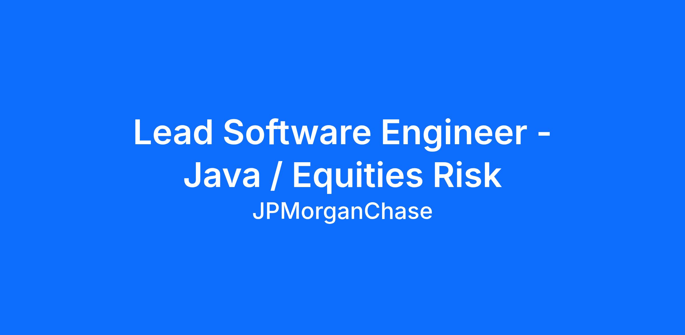 DescriptionAs a Lead Software Engineer at JPMorganChase within the Commercial and Investment Bank - Global Equity Derivatives Risk Management team, you are an integral part of an agile team that works to enhance, build, and deliver trusted market-leading technology products in a secure, stable, and scalable way. Drive the delivery of a best in class platform for real-time derivatives pricing, risk management, and streaming position aggregation for a range of complex financial products.