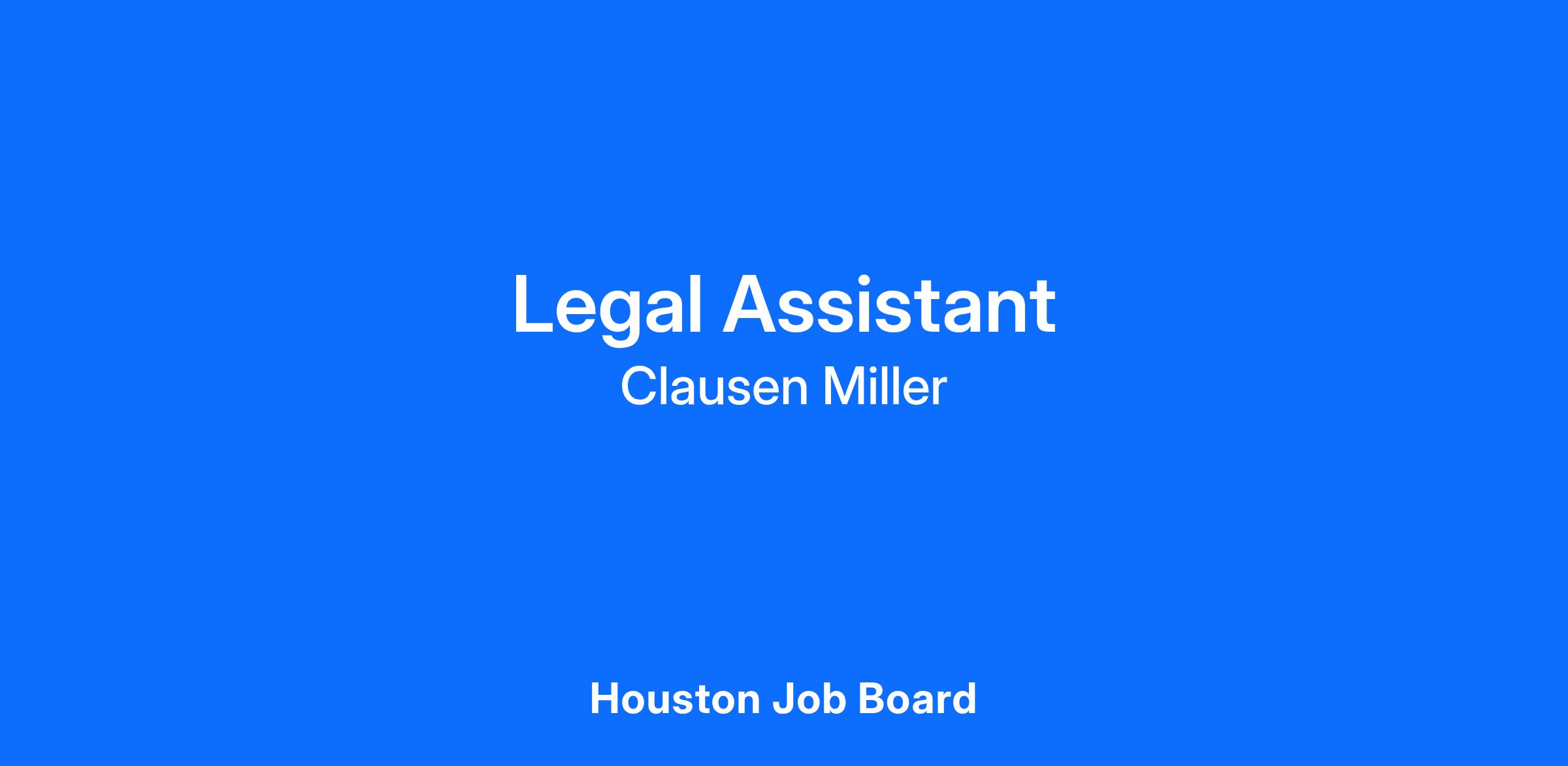 Clausen Miller P.C., a national law firm is seeking a qualified Legal Assistant to join our Texas team. Experienced candidates will be detail-oriented, possess excellent communication and organizational skills, be familiar with Texas legal procedures, protocols and court system. Stellar candidates can work independently, be able to monitor and meet deadlines, manage multiple tasks, and work well with others. Must be knowledgeable with formatting legal documents. Β