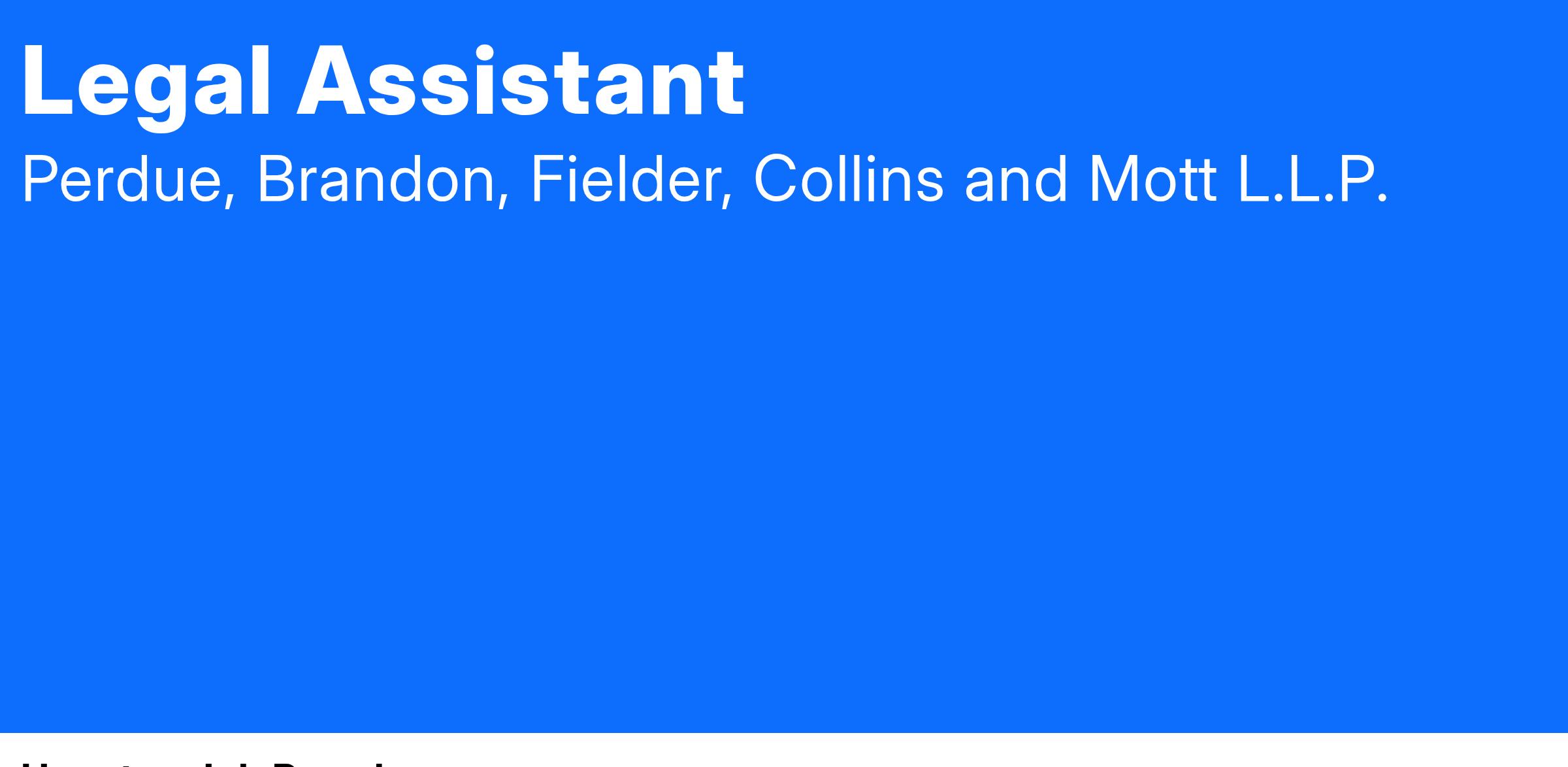 Perdue Brandon Fielder Collins and Mott LLP (PBFCM) has an immediate opening for a Legal Assistant in our Houston office.
