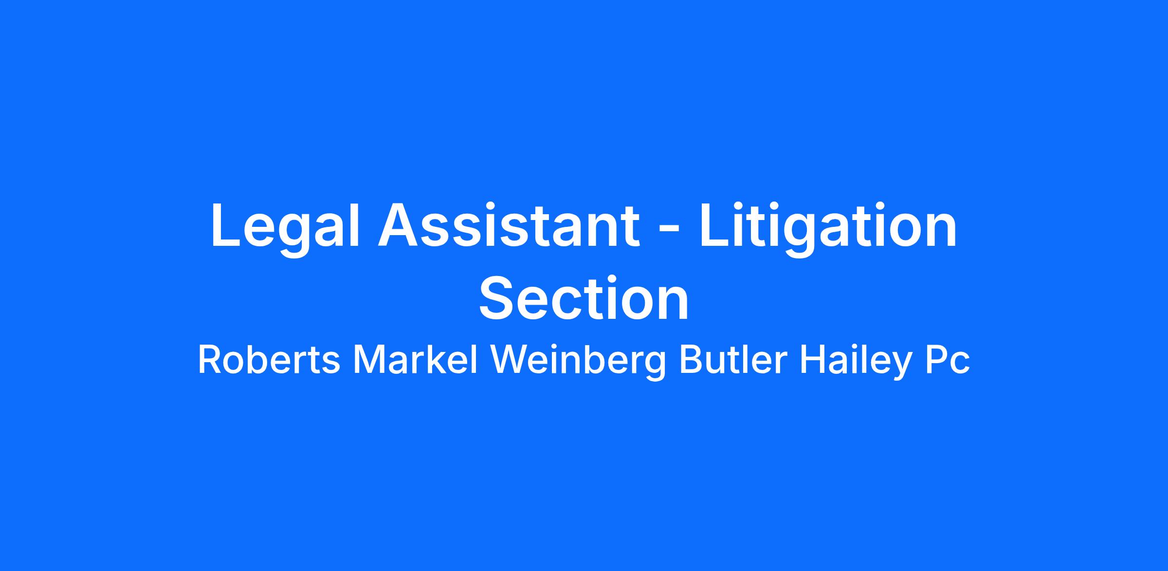 Roberts Markel Weinberg Butler Hailey PC is an equal opportunity employer and all qualified applicants will receive consideration for employment without regard to race, color, religion, sex, national origin, disability status, protected veteran status, or any other characteristic protected by law.