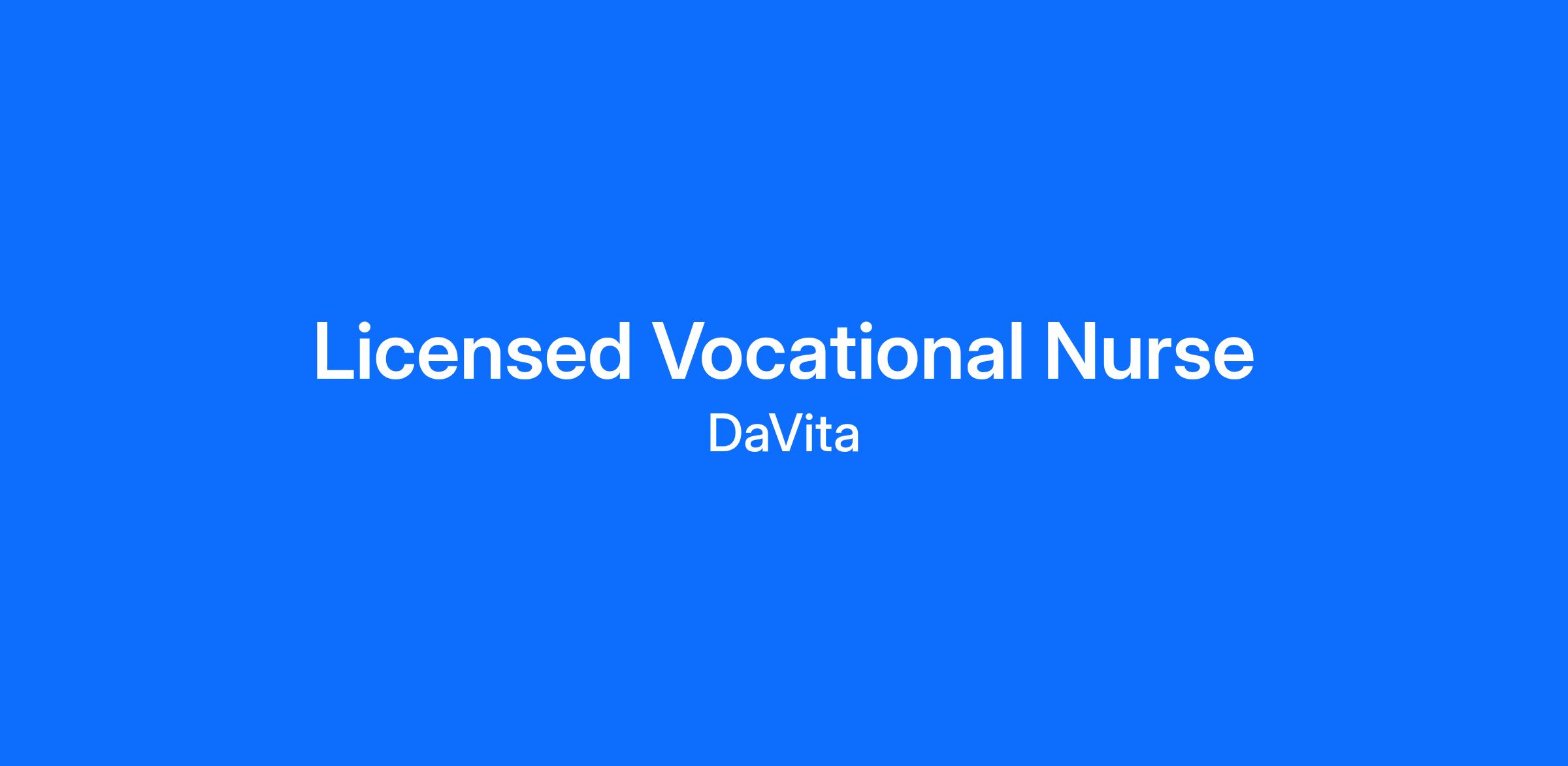 12/18/202510923 Scarsdale Blvd, Houston, Texas, 77089, United States of AmericaDaVita is seeking a Licensed Vocational Nurse who is looking to give life in an outpatient dialysis center. You can make an exceptional difference in the lives of our patients and their families dealing with end-stage renal failure or chronic kidney disease. Do you desire to deliver care in an empathetic, compassionate way - the way you'd want your own care to be?