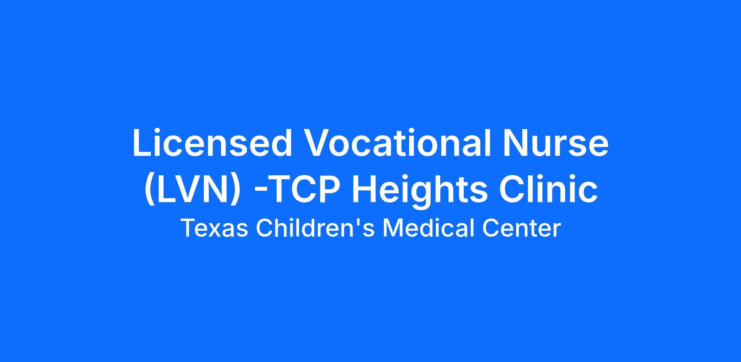 We are searching for a Licensed Vocational Nurse (LVN)) at the TCP Heights Clinic — someone who works well in a fast-paced setting. In this position, you will gather information, assess and provide direct care to patients. Works collaboratively with other members of the healthcare team to render age appropriate care.