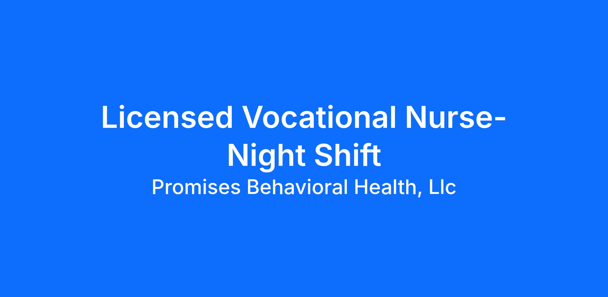 The Licensed Vocational Nurse (LVN) completes client admissions and screenings, administers and stocks medication, develops treatment plans and provides nursing care. This position also manages medical record documentation and supervises subordinate staff. Currently hiring for night shift weekends, but schedule subject to change per facility needs.Β