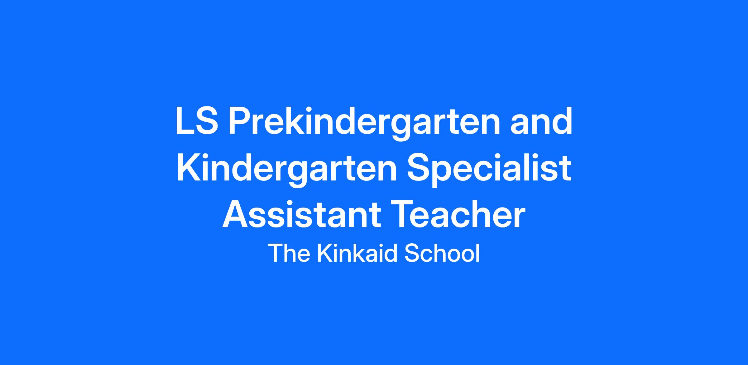 The Kinkaid School is seeking a Lower School Pre-kindergarten/Kindergarten Specialist Assistant Teacher to join its Lower School starting in August 2026. This teacher must embrace and help advance the principles set out in Kinkaid’s mission and core values, Lower School Educational Philosophy, and Portrait of a Teacher. The Kinkaid School is a co-educational non-sectarian day school enrolling 1,400 students in pre-kindergarten through twelfth grade. Located on a sixty-five-acre campus in the heart of Houston, Texas, the school offers a thriving intellectual community in the midst of a vibrant, urban, diverse culture.