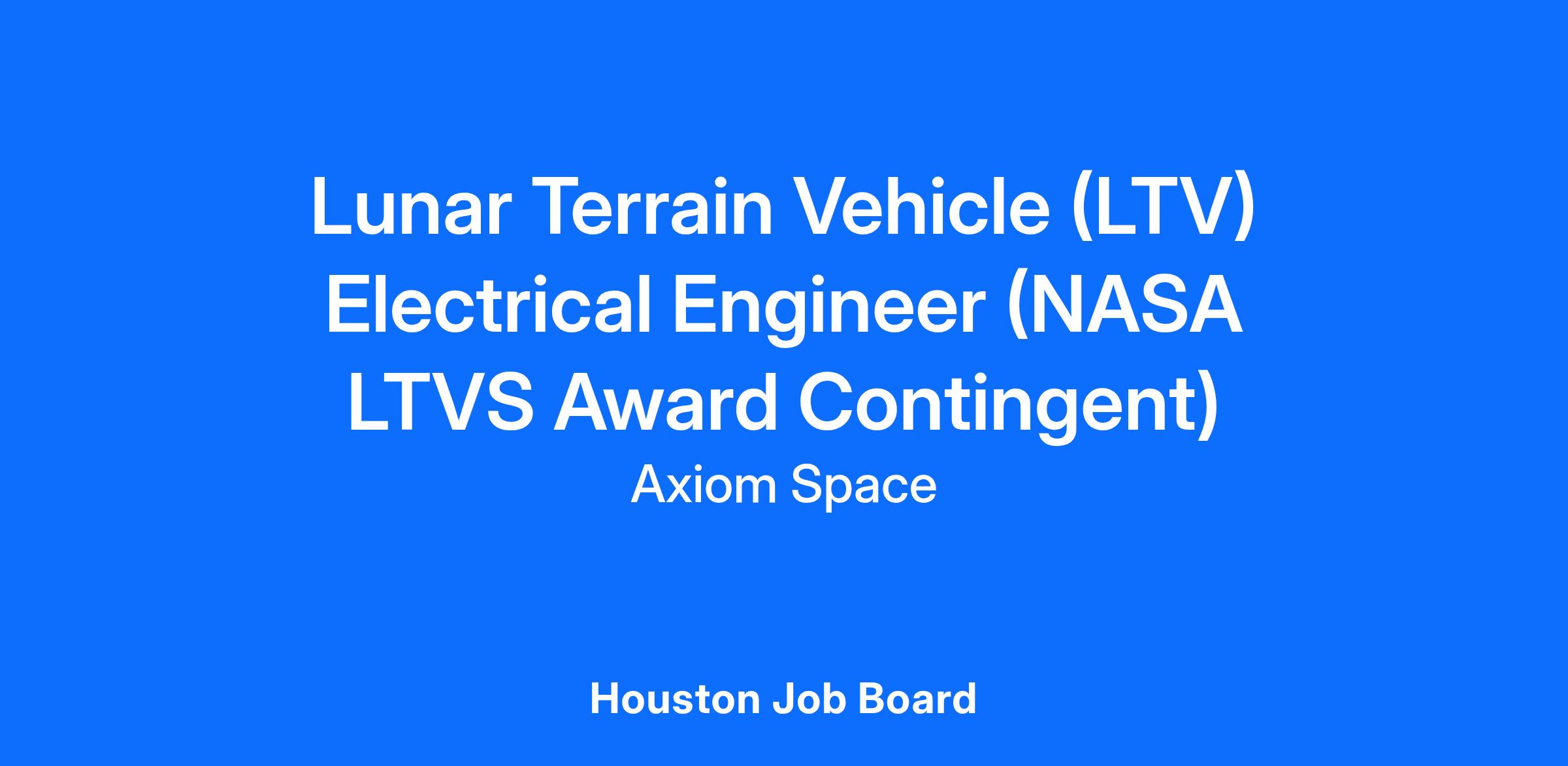 We are looking for a resilient, high-energy, experienced Electrical Engineer to join Axiom’s Lunar Terrain Vehicle (LTV) program in support of NASA’s LTV Services (LTVS) contract in partnership with Astrolab. The role requires strong problem solving, organizational, time management, and communication skills. Experience in Extravehicular Activities (EVA) and Extravehicular Robotics (EVR) operations and hardware is desired.