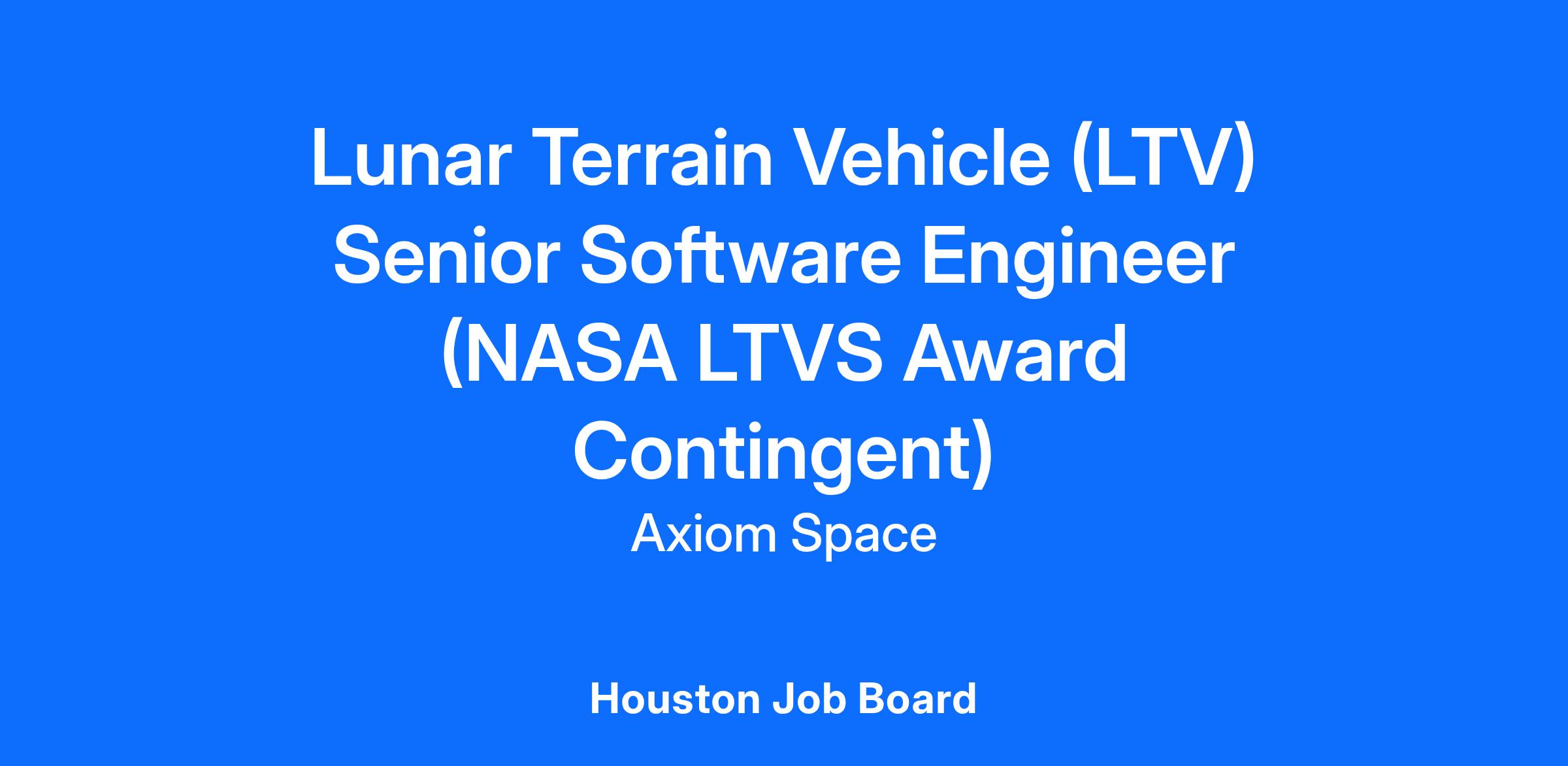 We are looking for a resilient, high-energy, experienced Senior Software Engineer to join Axiom’s Lunar Terrain Vehicle (LTV) program in support of NASA’s LTV Services (LTVS) contract in partnership with Astrolab. The role requires strong problem solving, organizational, time management, and communication skills.