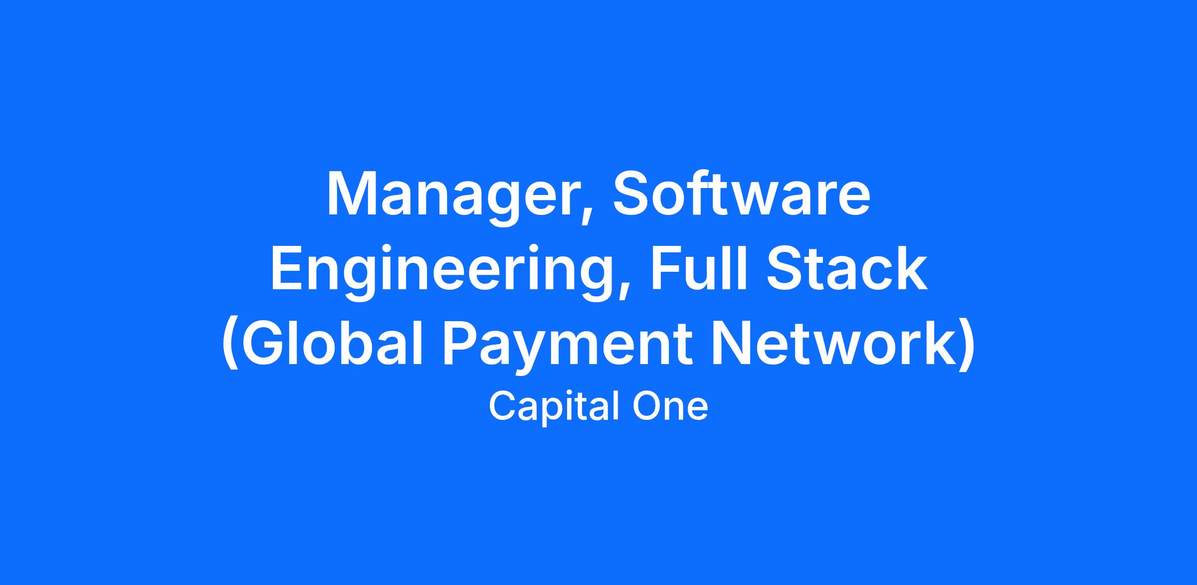 Do you love building and pioneering in the technology space? Do you enjoy solving complex business problems in a fast-paced, collaborative, inclusive, and iterative delivery environment? At Capital One, you'll be part of a big group of makers, breakers, doers and disruptors, who solve real problems and meet real customer needs. We are seeking Full Stack Software Engineers who are passionate about marrying data with emerging technologies. As a Capital One Manager Software Engineer, you’ll have the opportunity to be on the forefront of driving a major transformation within Capital One.