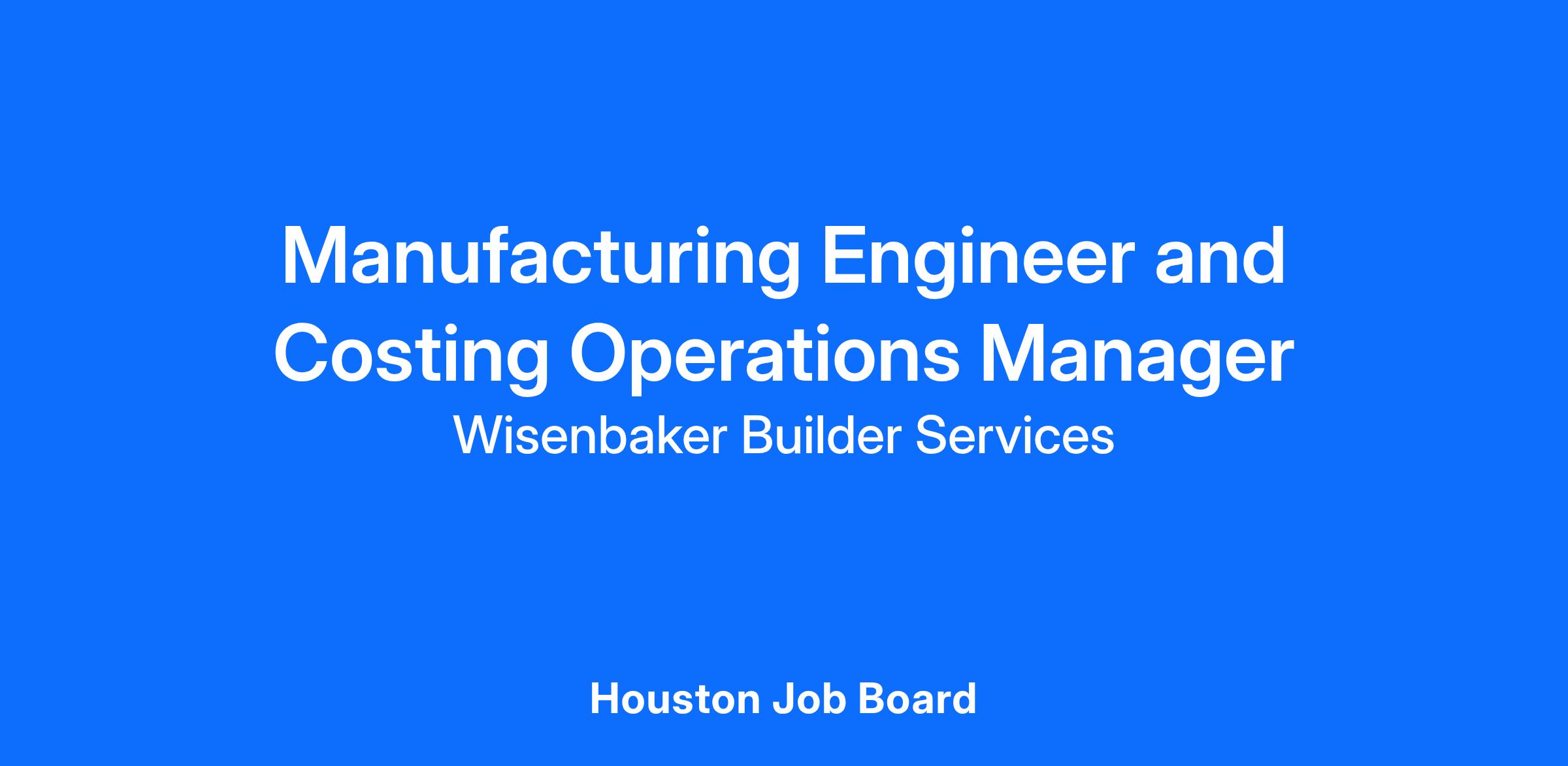 Why settle for the same routine when you can lead innovation? You deserve more than just another management role — you deserve a career where your expertise drives the future of engineering, costing, and operations. At Wisenbaker, quality and efficiency aren’t just goals — they’re the standard. We take pride in craftsmanship, teamwork, and continuous improvement, and we’re looking for a leader who shares that vision.